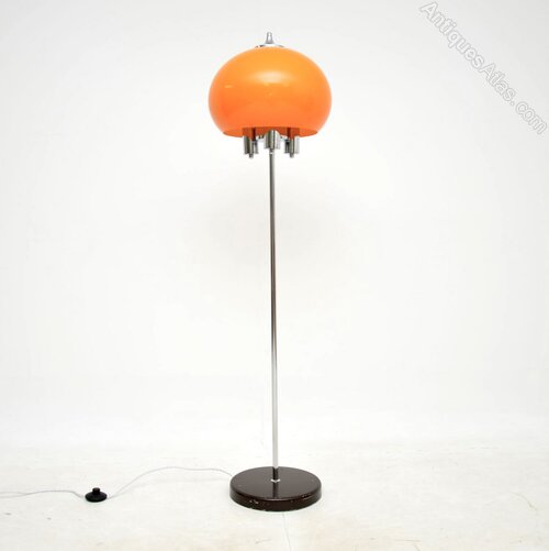 A stylish and very well made 1970’s vintage Italian chrome floor lamp.The chrome frame is of amazing quality, with three bulb holders. There is a fantastic orange acrylic shade which is beautifully rounded, and compliments the chrome very nicely.