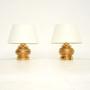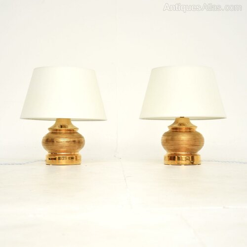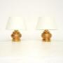 A stunning pair of vintage Italian ceramic table lamps by Bitossi. They were designed by Aldo Londi, they were made in Italy and date from around the 1970’s.They are of wonderful quality, with a gorgeous spun design and gold finish, wit a rose gold central section. They are a lovely petite size, and look wonderful lit up.