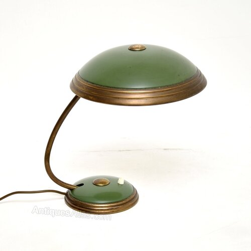 A very stylish and extremely well made vintage Bauhaus enamel and brass desk lamp by Helo Leuchten. This was made in Germany, it dates from around the 1950’s.The quality is amazing, the brass frame has a lovely patina and this has a gorgeous overall design. The lamp shade can be tilted and rotated, the neck is also adjustable.