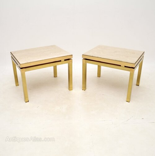 A stunning pair of vintage Italian brass and marble side tables, dating from the 1970’s.They are of outstanding quality, the solid brass frames are heavy and very well made. They are beautifully styled and have inset cream marble tops that can be lifted in and out.