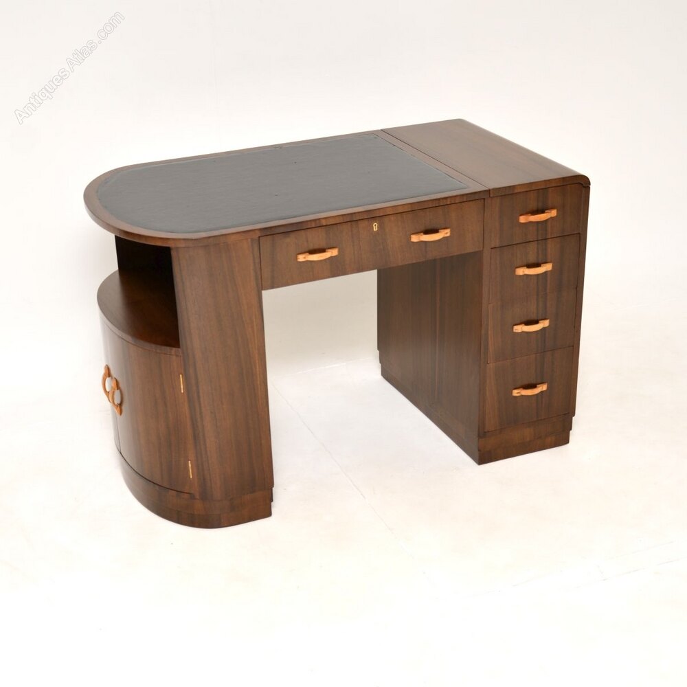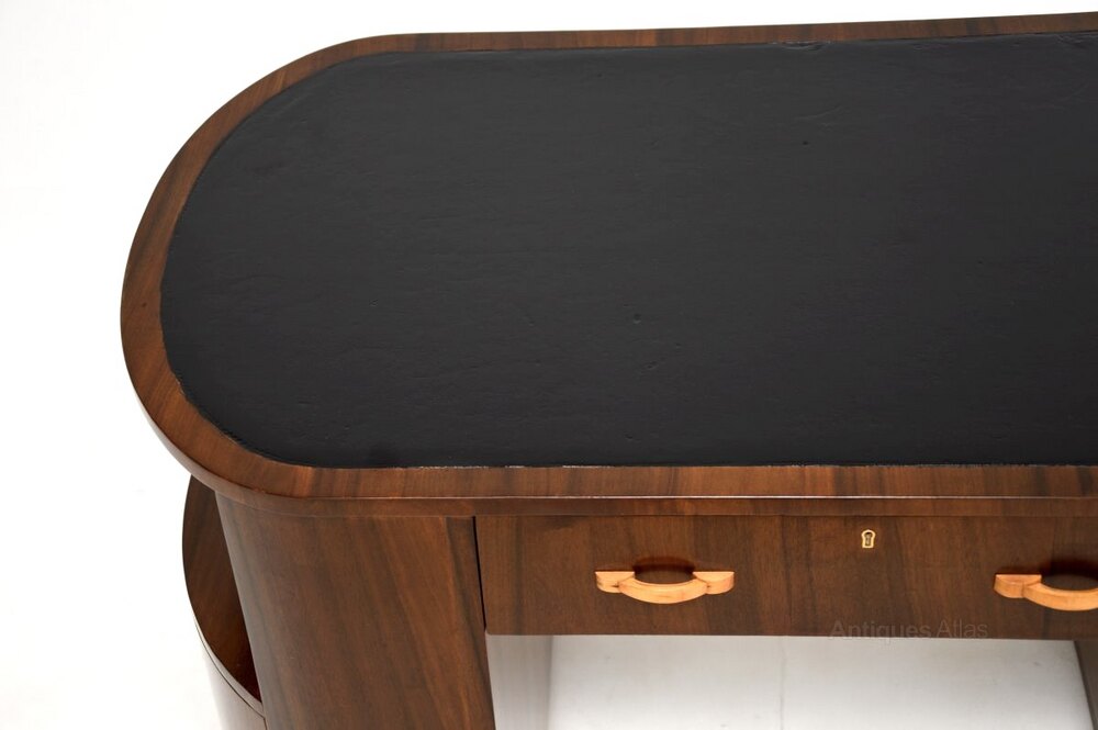 Art Deco Figured Walnut Leather Top Desk