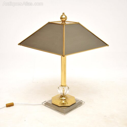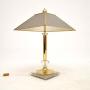 An extremely impressive large vintage Italian brass and steel table lamp. This was recently imported from Italy, it dates from the 1970’s.The quality is outstanding, this is very heavy and very well made. The large brushed steel shade is fantastic, and has a gun metal grey colour that is offset beautifully by the brass tones. There are thick clear glass fixtures at the top and bottom of the stand, the steel base is also encased in tough, clear glass.