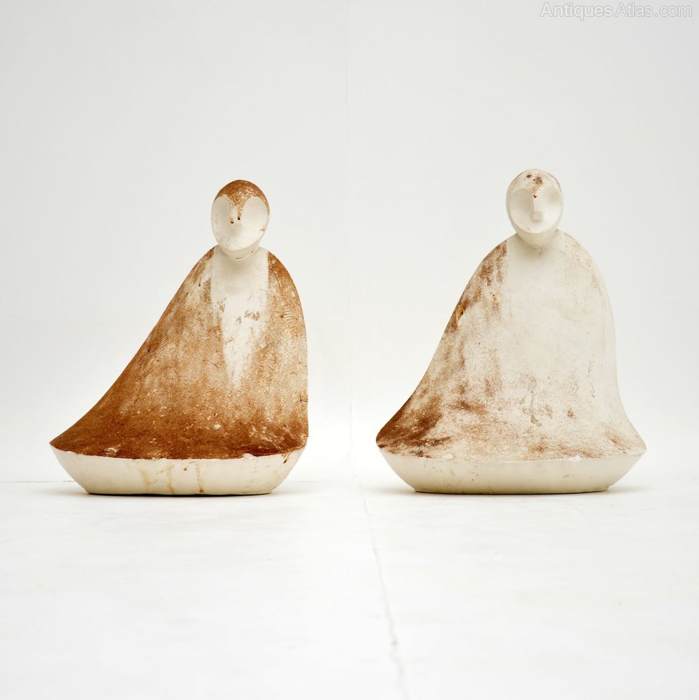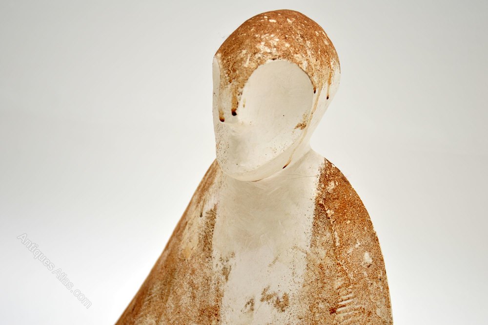 A beautiful and unusual pair of clay sculptures, these date from around the 1960-70’s. They are unsigned but have a most interesting look and are a great size. They are very well made and mostly in very good condition. The darker sculpture has a crack around the neck and must be handled very carefully as the head could be broken off if not looked after. However it has not been broken off yet and the crack is barely noticeable when left alone!Width – 36 cm , 14 inches
