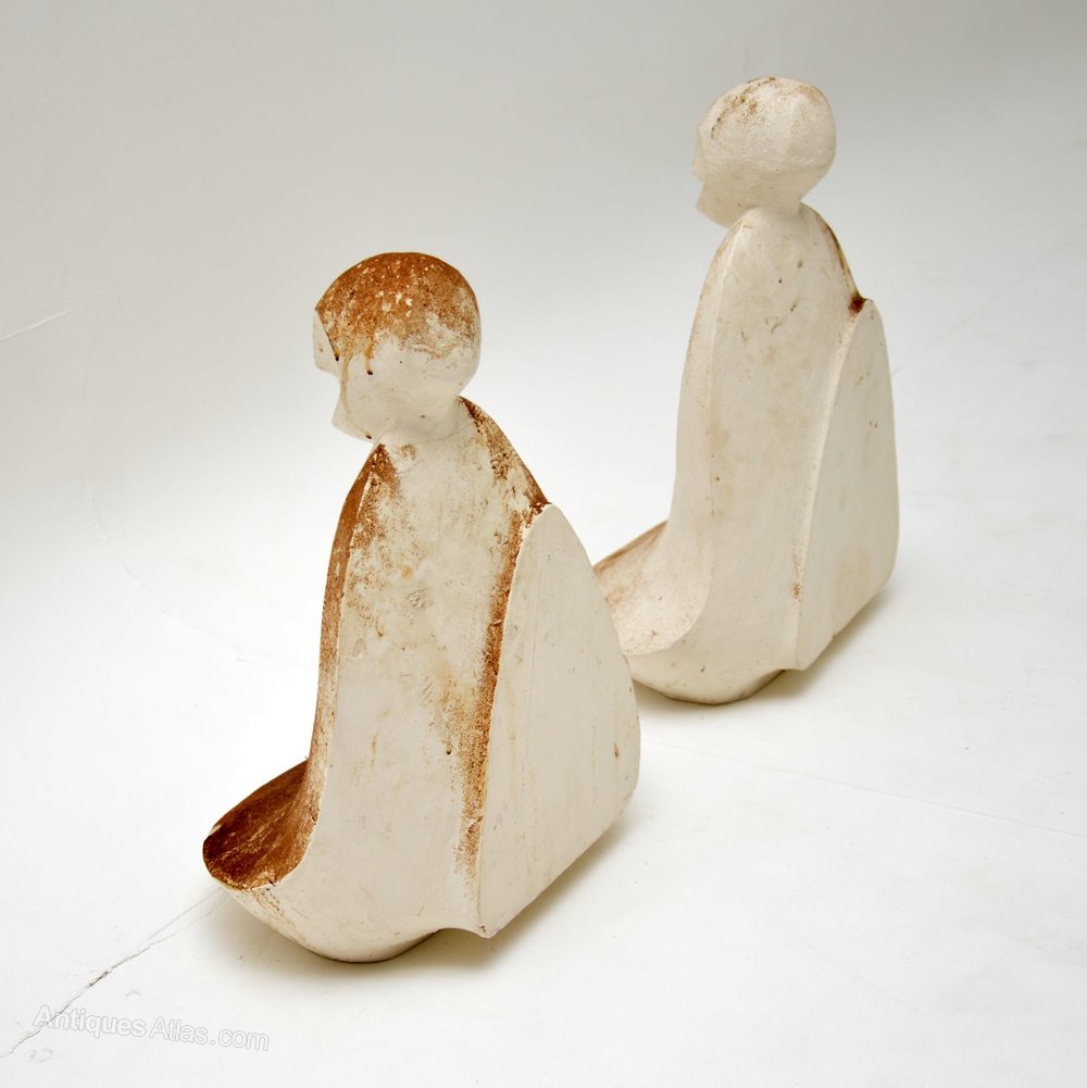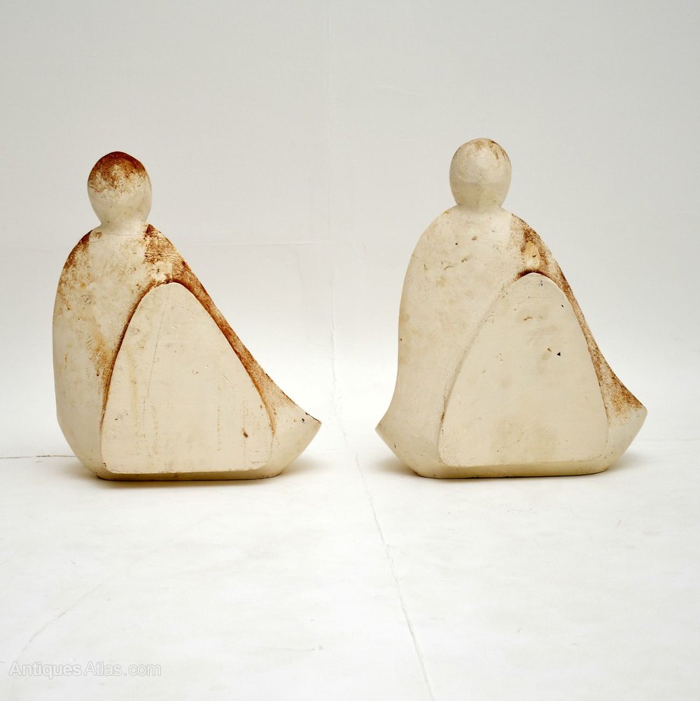 Pair of Distressed Clay Sculptures Vintage 1960's