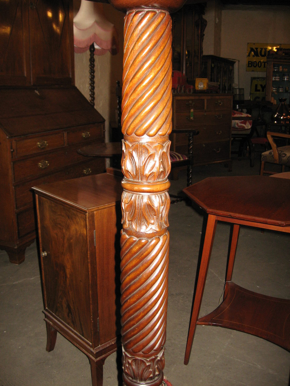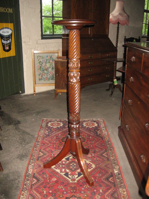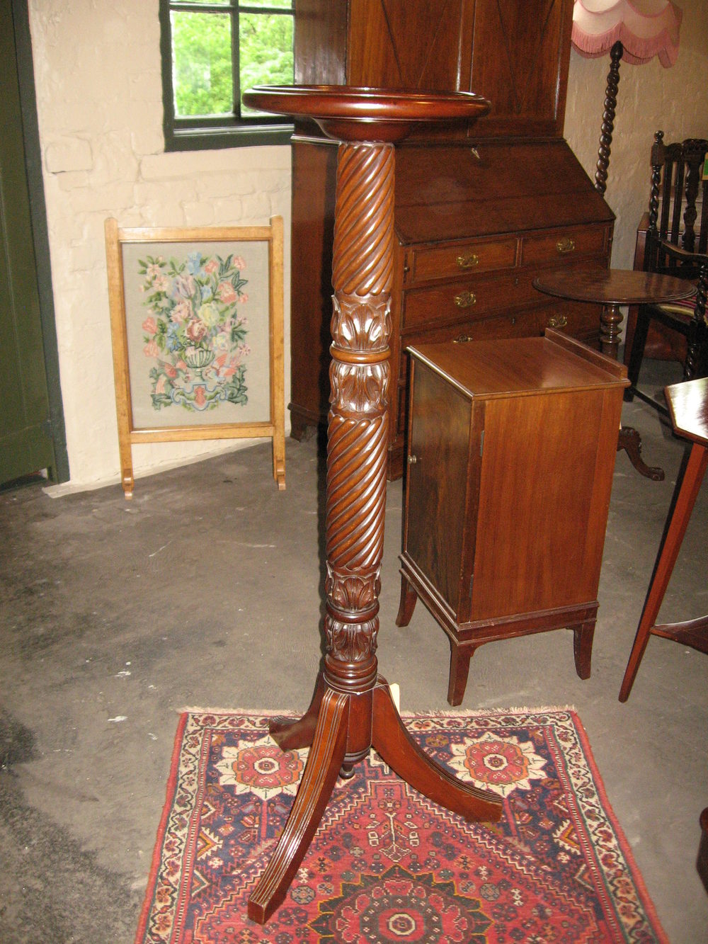 Decorative Victorian mahogany Torchere with circular top,hand carved spiral twist pillar with acanthus leaf centre, supported by triple splay leg base.DateLate Victorian :