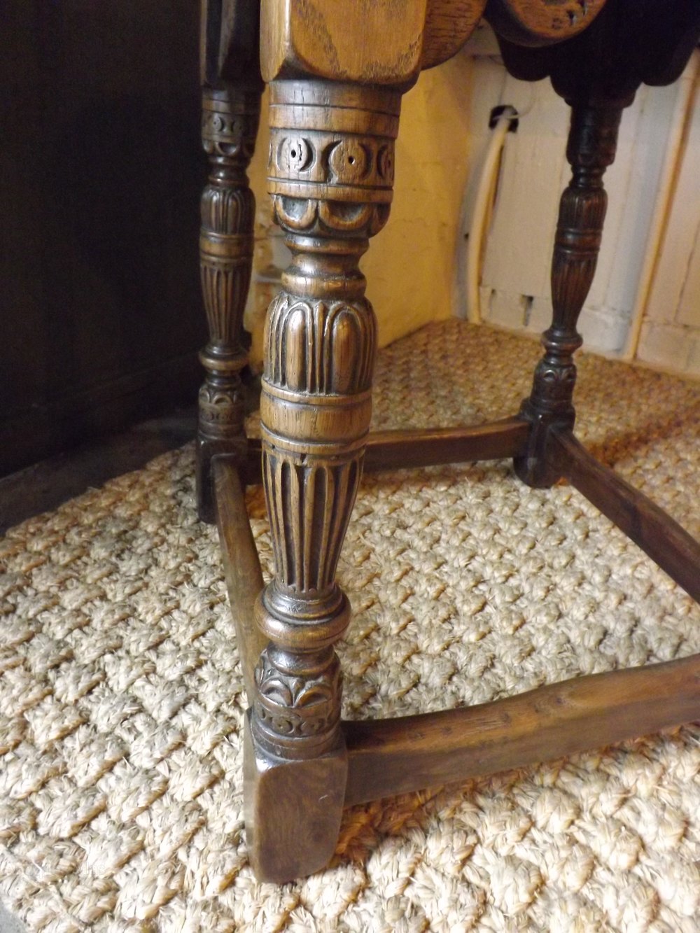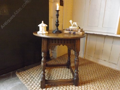 17th style century solid and sturdy small oak lamp table, well made in traditional fashion and extremely well carved throughout to give an antique 17th century style and look to this pretty table.Always an eclectic array of Antique and Vintage Goods in stock, please phone before travelling to view. follow us on face book/ Michael Allcroft Antiques. Any Enquiries Please Contact. Established since 1986, Third generation Antique Dealer