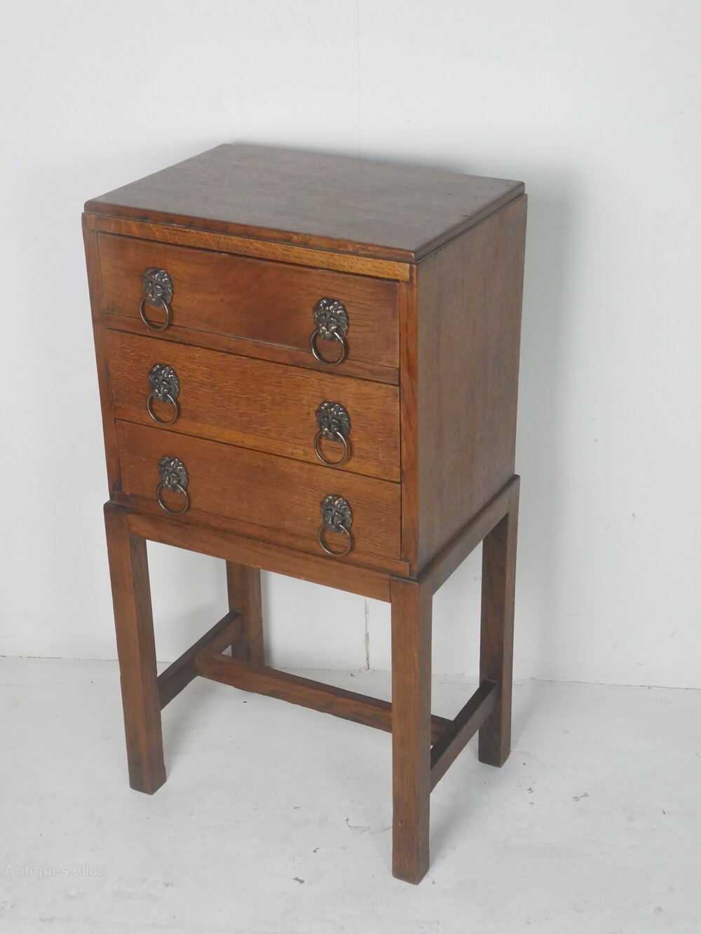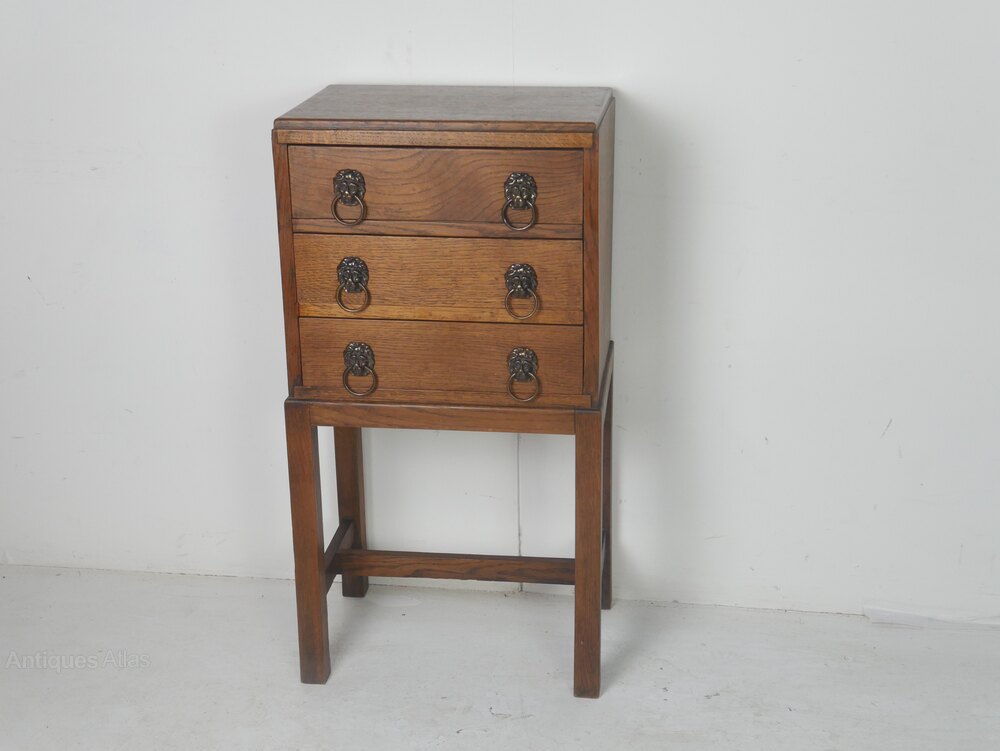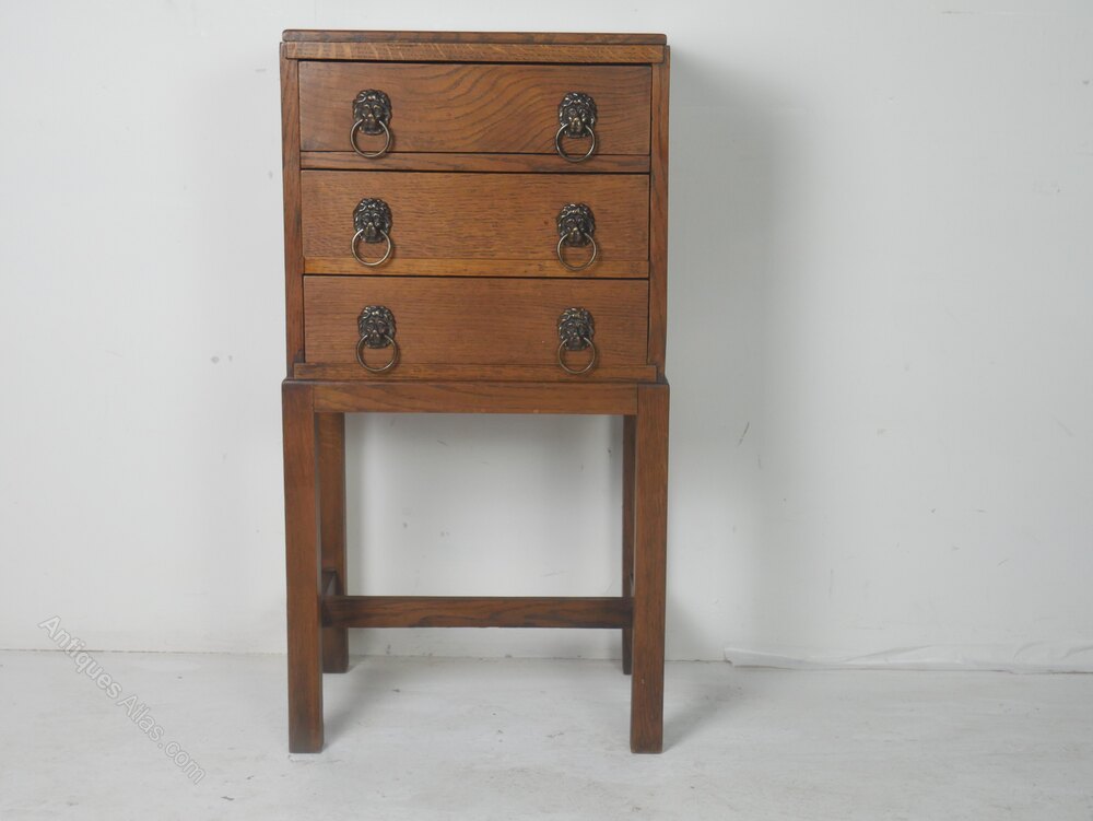good quality oak chest of three drawers with lion mask handles. A versatile chest in good strong condition, with free running drawers, made in the 1920s, a warm colour and all ready for use.Currently free UK mainland delivery available.
