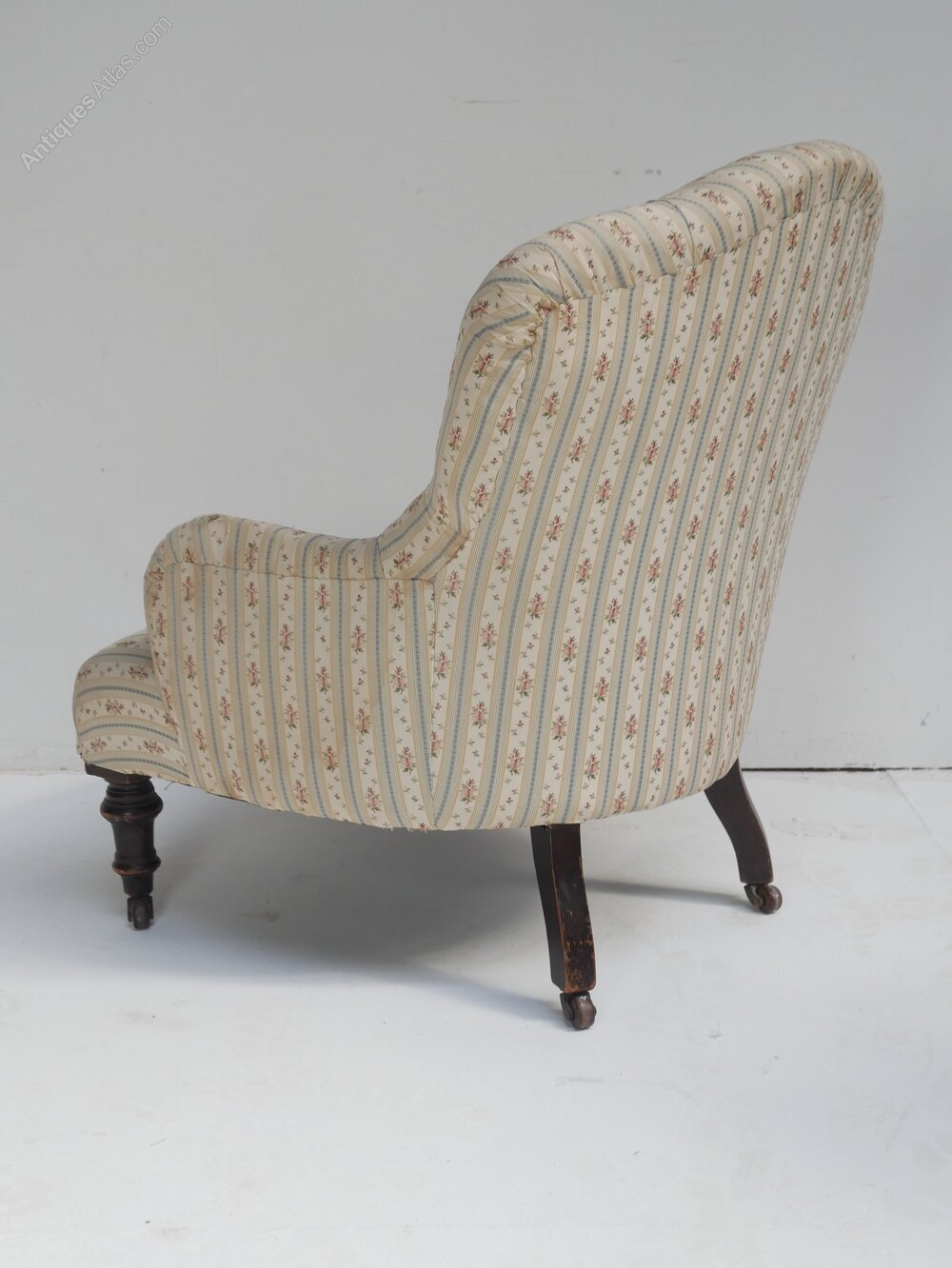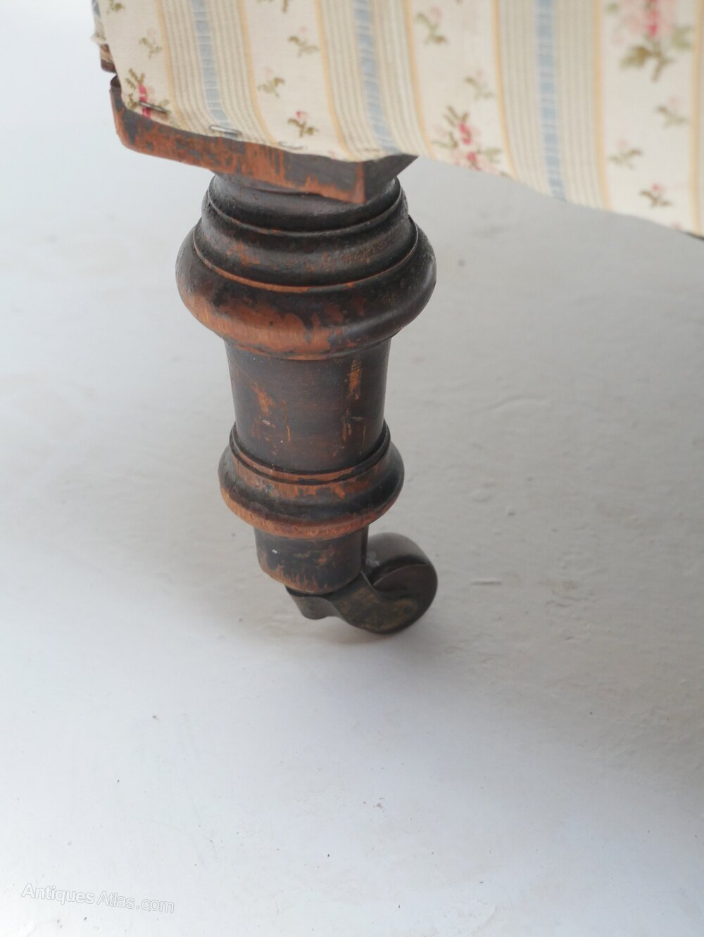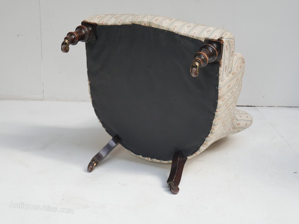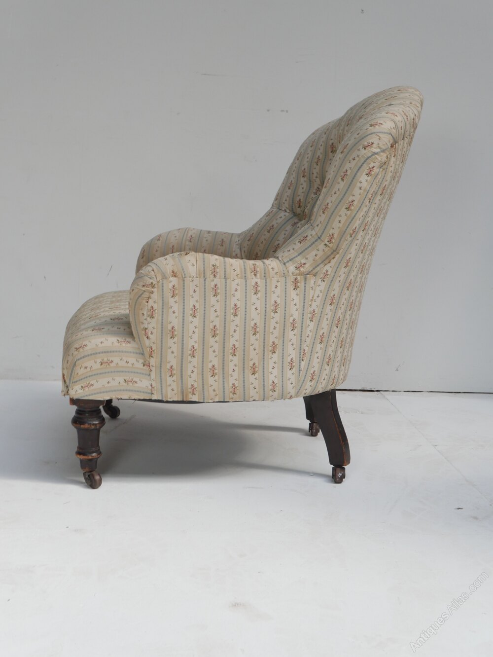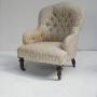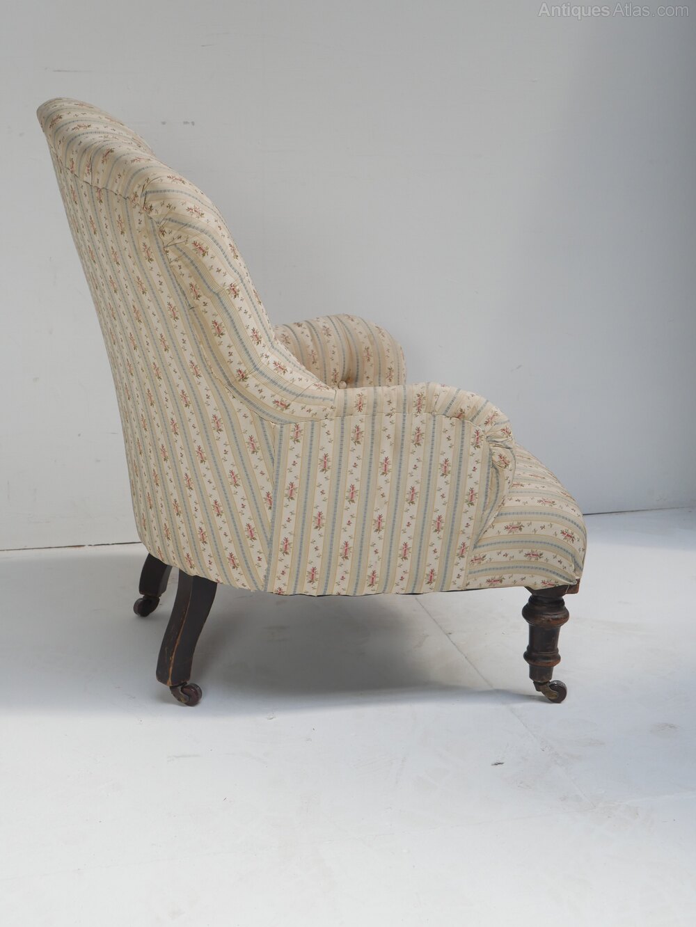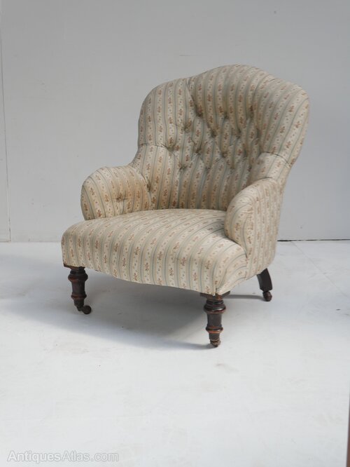 A well designed small buttoned armchair for upholstery, turned front legs, with the original castors. The chair is stamped CVS for Cornelius V Smith cabinet makers London 1885-1891, all strong condition, comfortable seat, 33cm for seating height, for upholstery.Currently free UK mainland delivery available.