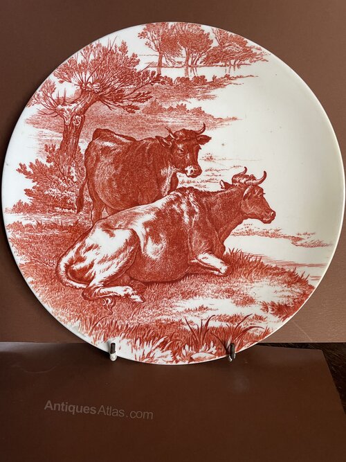 An unusual version in sepia of a pastoral scene of cows ,more usually seen in blue circa late 19th centuryDateLate Victorian