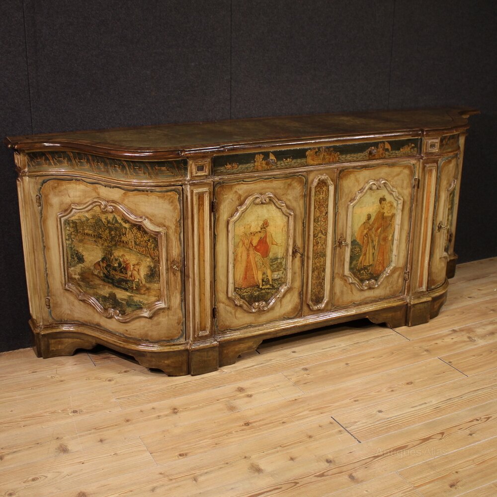 Great lacquered and painted Venetian sideboard