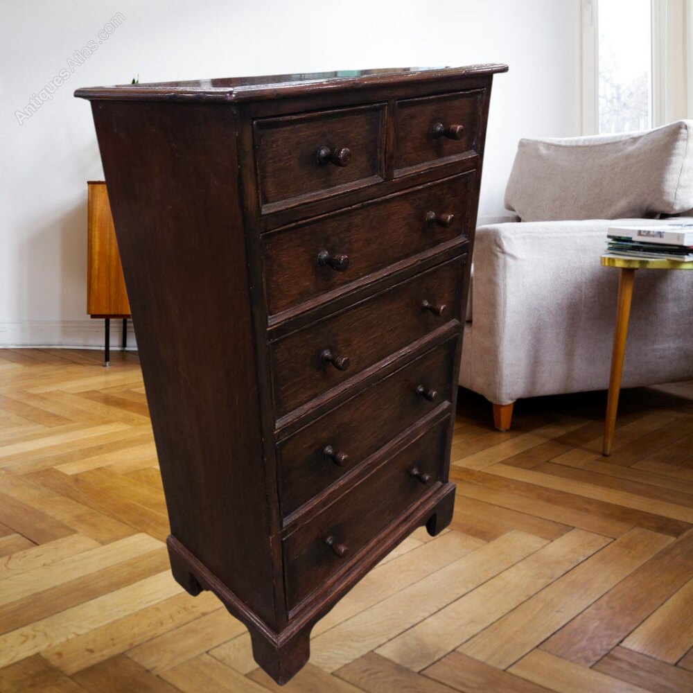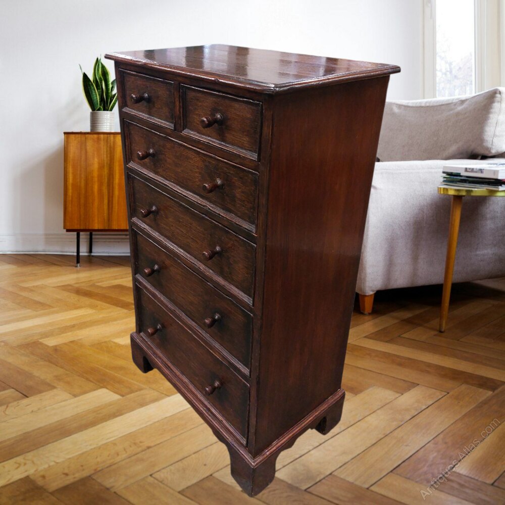 Petite Aged Oak Chest Of Drawers 2 Over 4