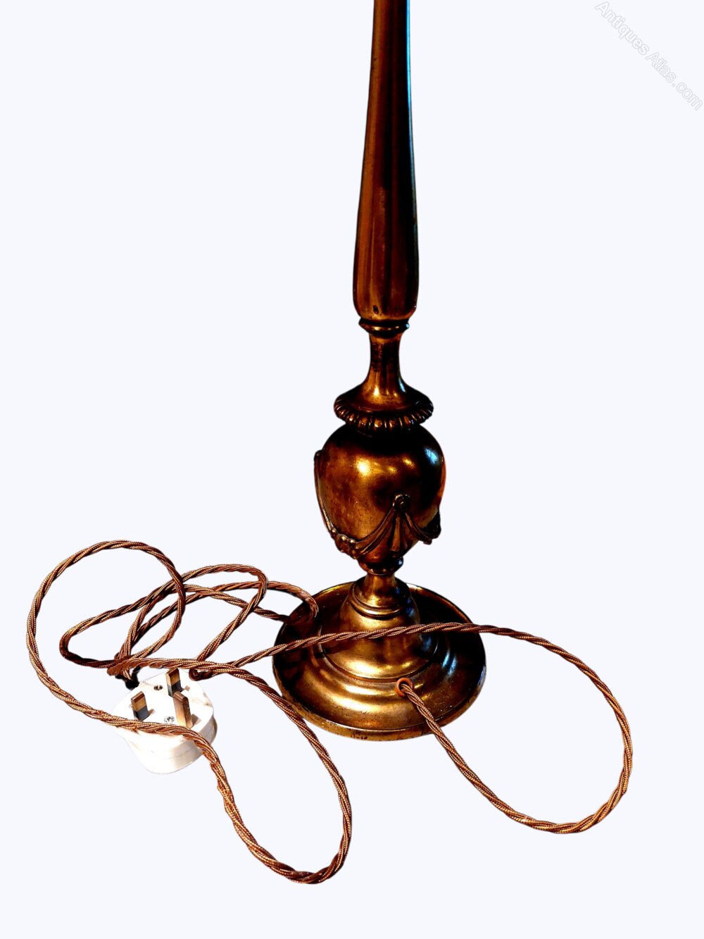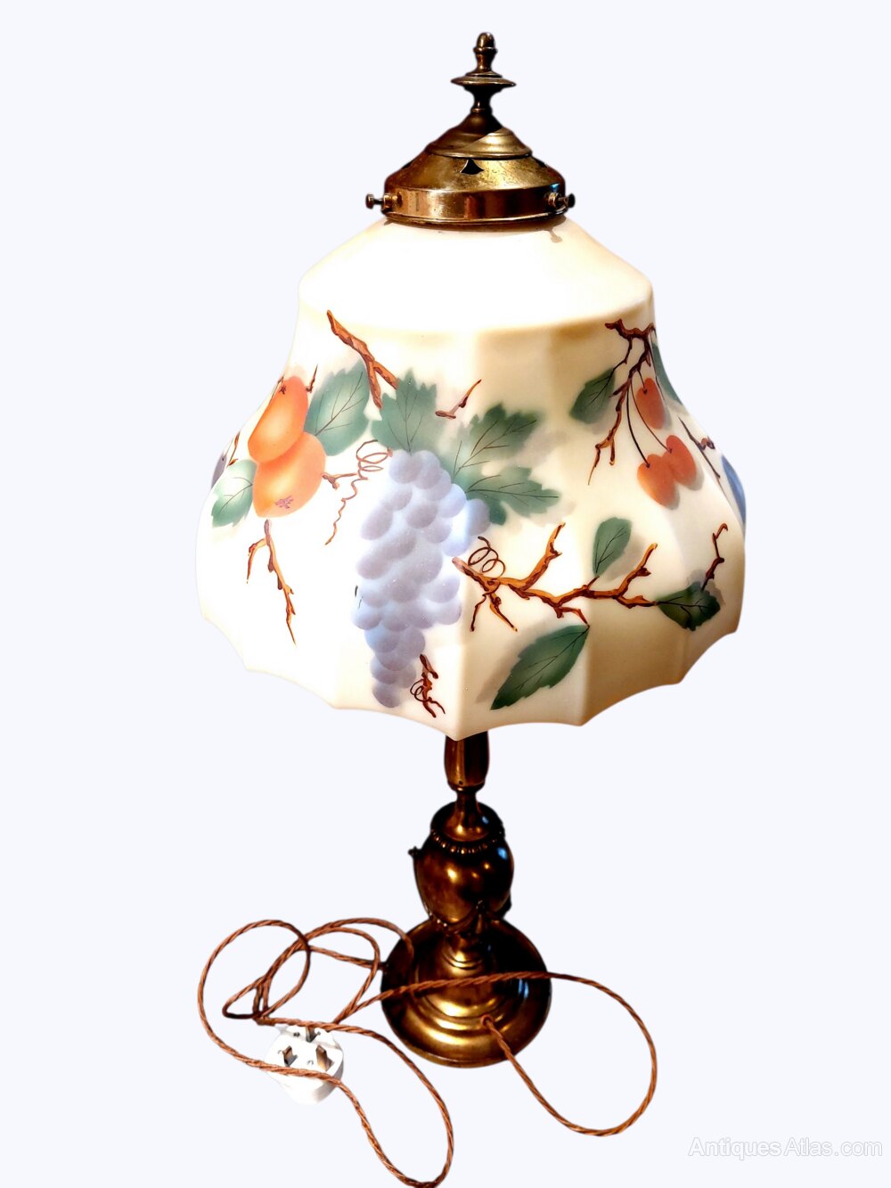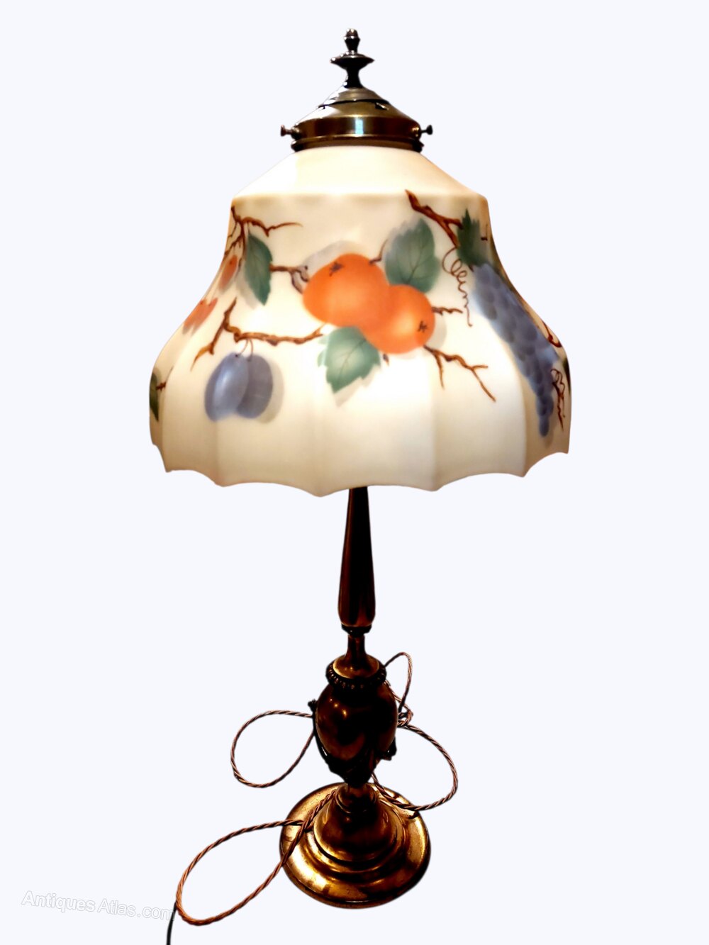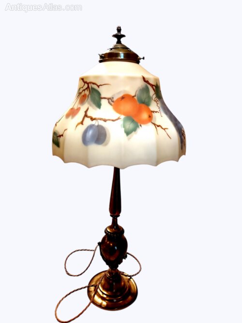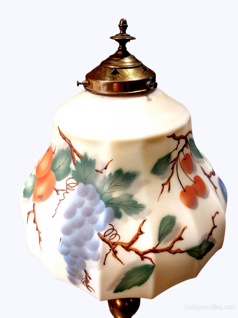 Edwardian Ormolu Table Lamp Painted Glass Shade