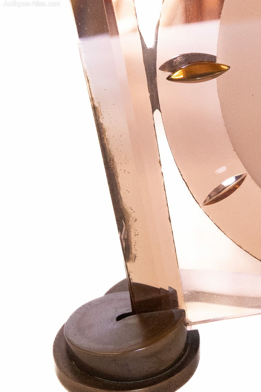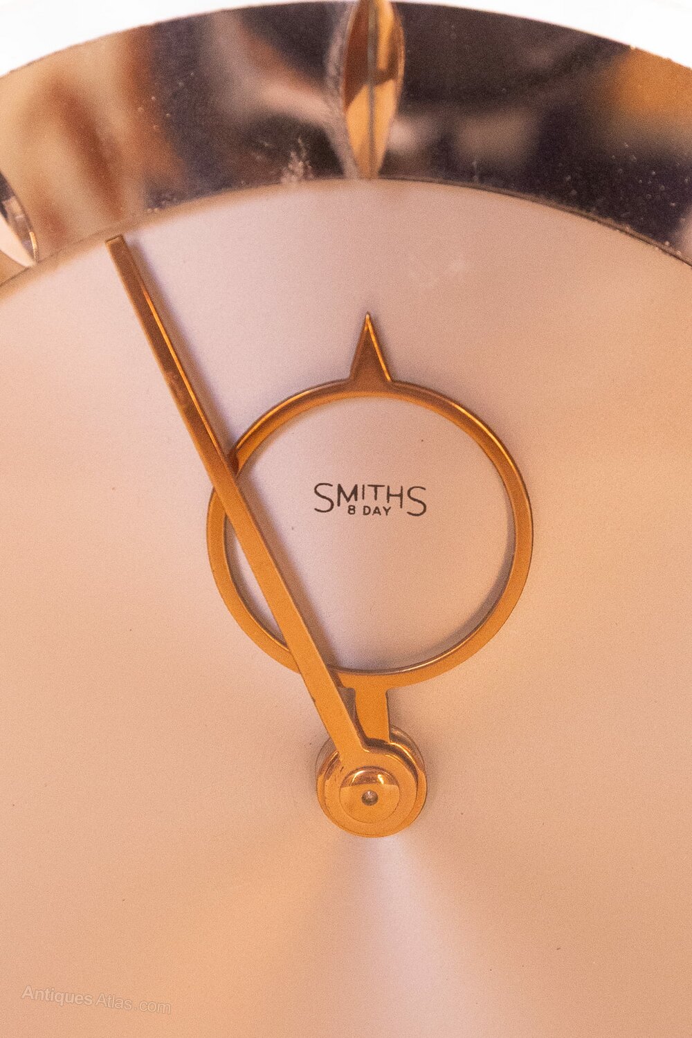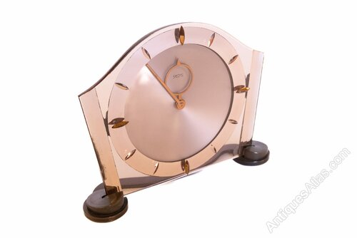 Art Deco smiths Champagne Glass Mantel Clock 1930sBronze base & back supports,