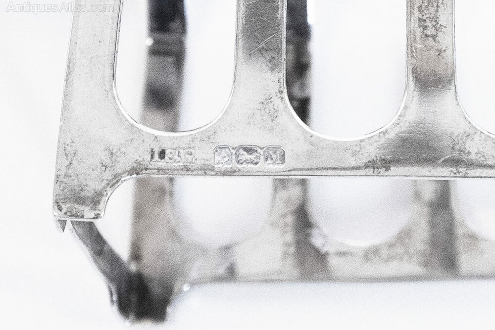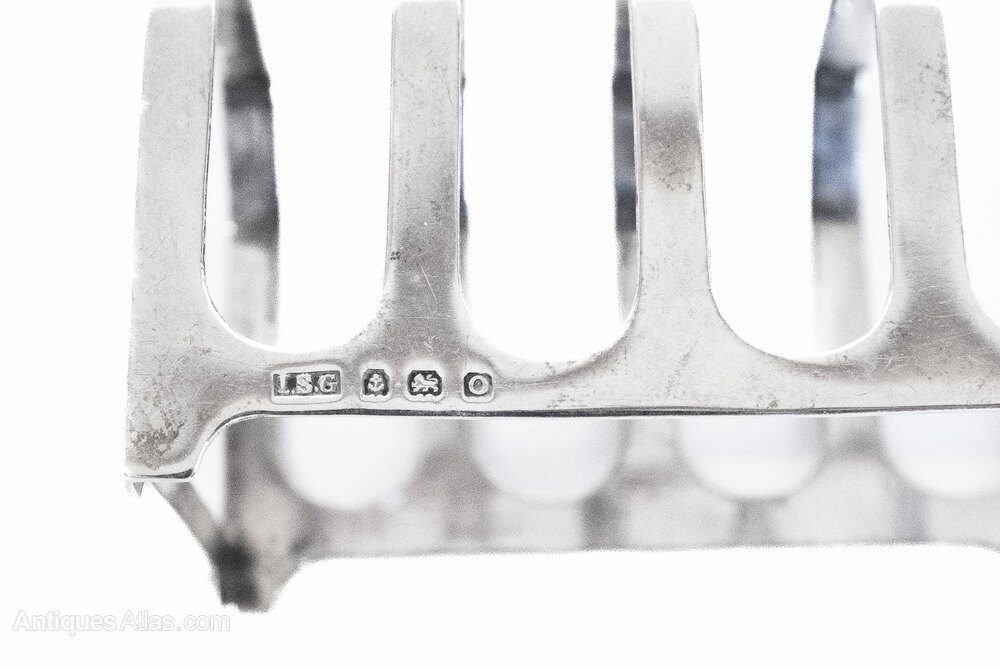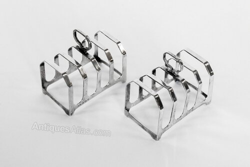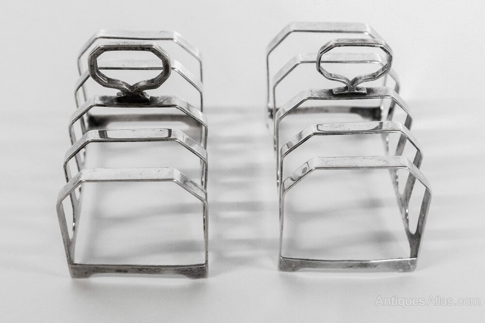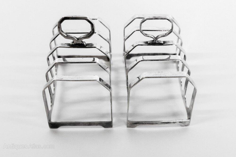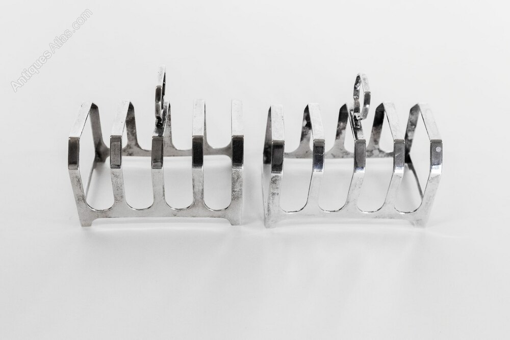 Near Pair Art Deco Silver Toast Racks Birmingham, Hallmarks for 1936 & 1938 maker : L.S.GEach with 4 racks,