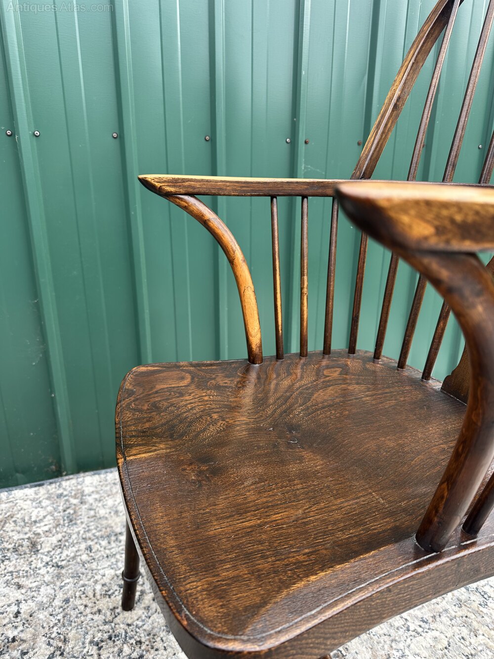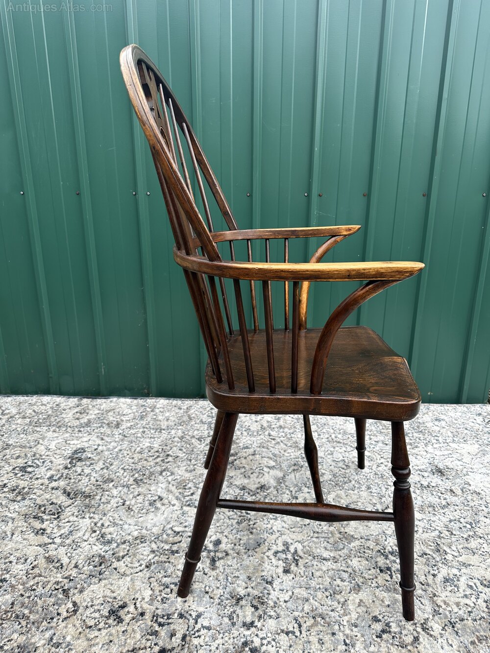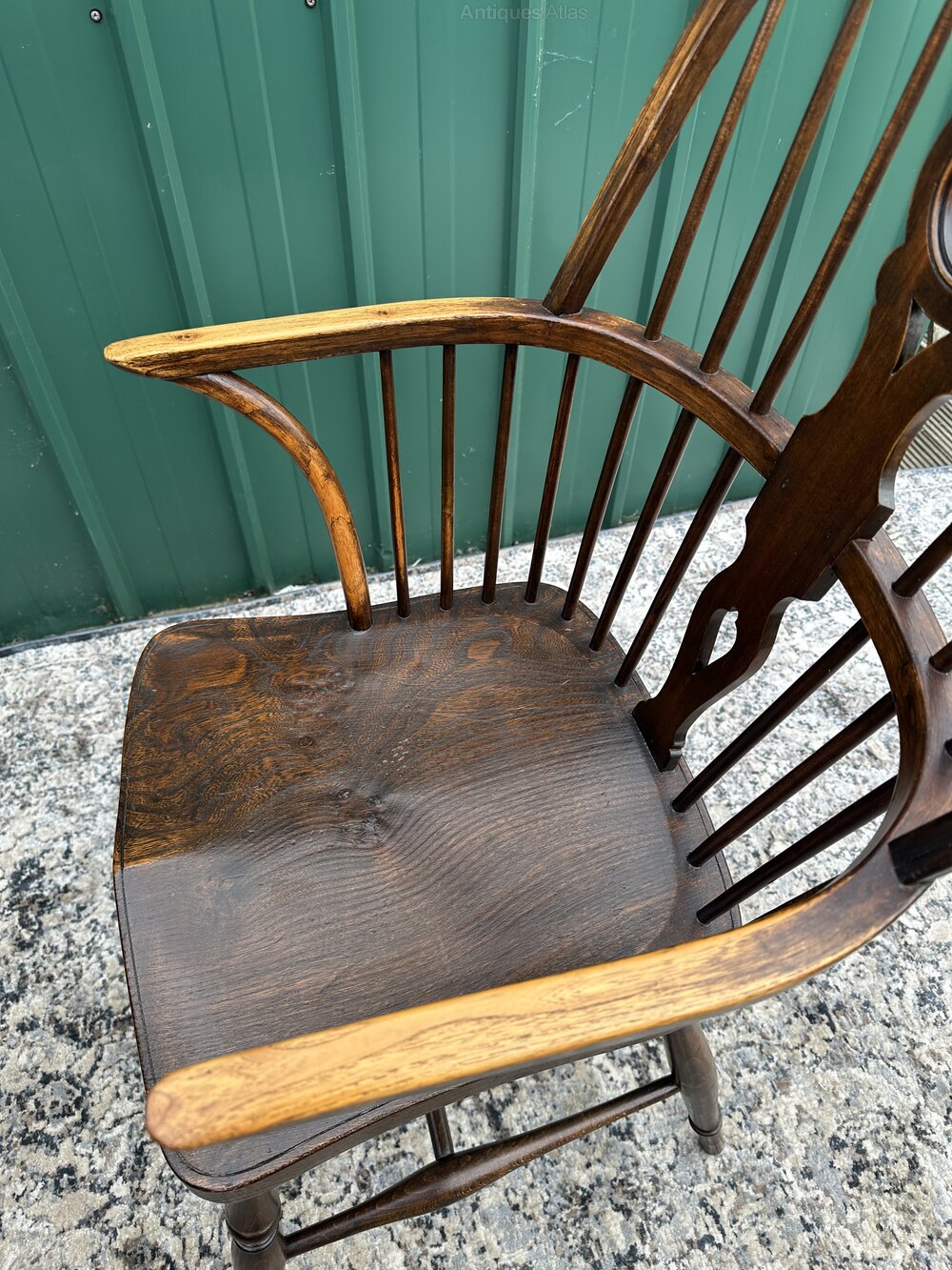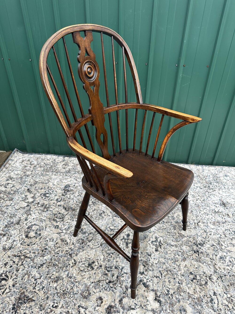 Below four nicely turned splayed legs united by a H stretcher help finish off this shining example of an Ash and Elm Windsor Chair.