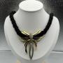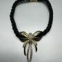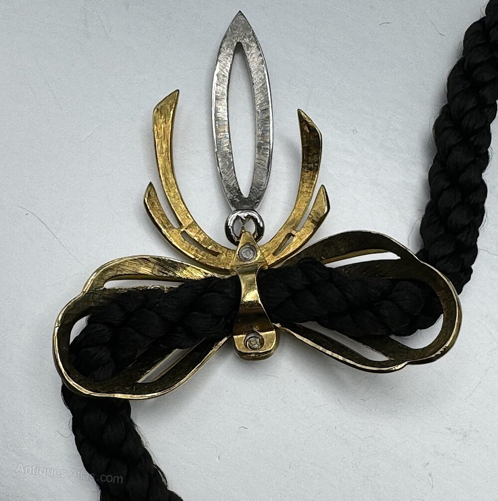 Bergdorf and Goodman is a luxury department store on 5th Avenue, New York founded in 1899. Bergdorf and Goodman stocked jewellery from a number of iconic designers and in around 1980 launched it's own brand of high quality statement costume jewellery strongly influenced by designers such as Marina B, Barry Kieselstein-Cord, Verdura and Angela Cummings. Some aspects of the design of this particular necklace seems to have been influenced by Barry Kieselstein-Cord who in the 1980s produced mixed material designs incorporating cord or leather necklaces with stunning metal central drops.