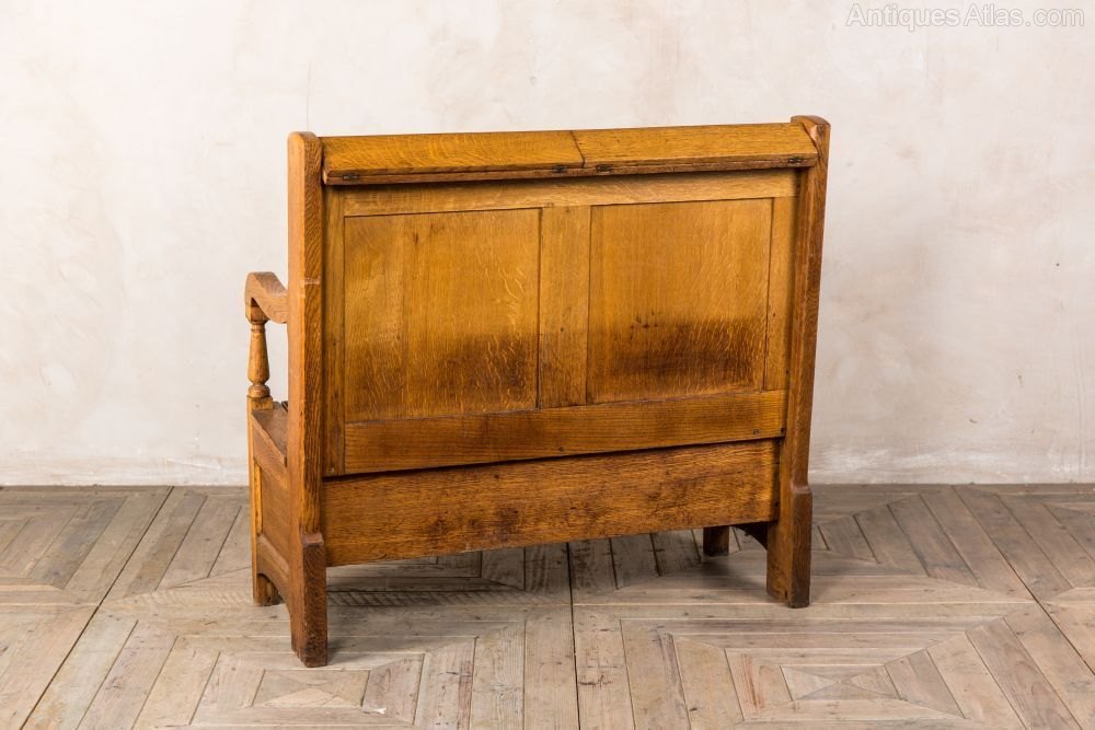 Antique Solid Oak Settle Pew Bench