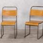 These stackable plywood chairs are in good condition, with only some general marks of wear and tear consistent with age.