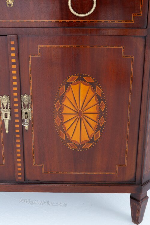 Georgian Mahogany Inlaid Side Cabinet.This Pretty Side Cabinet Features 2 Doors With Inlaid Decoration and Decorative Brass Escutcheons.