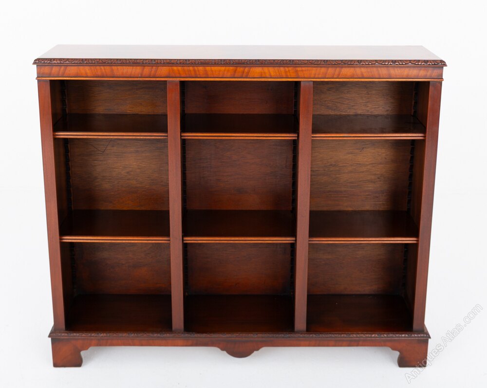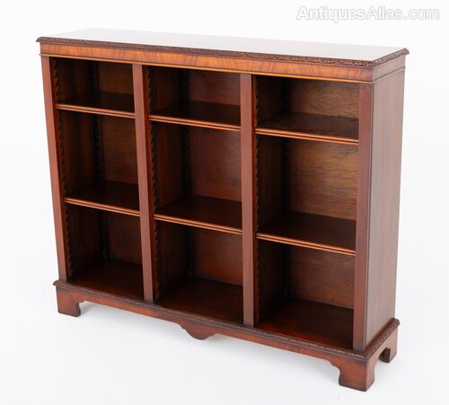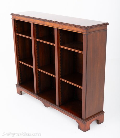 Mahogany 3 Section Open Bookcase.This Bookcase is Raised Upon Bracket Feet with Carved Moldings.