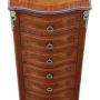 Burr walnut and mahogany veneers with ormolu brass mounts