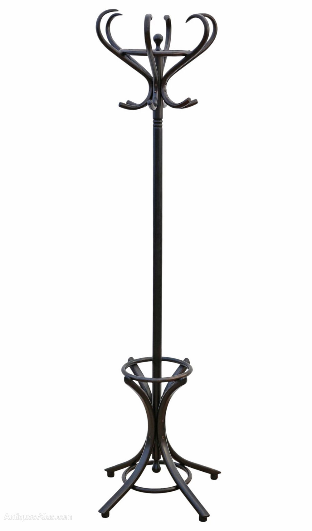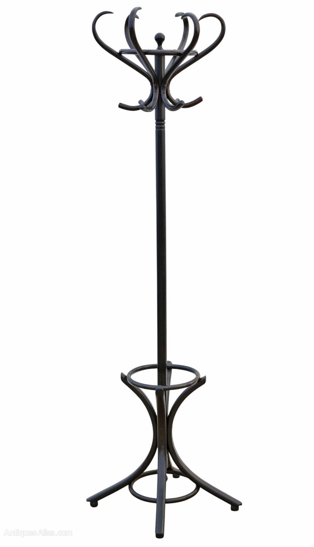 Antique Quality 1920 Ebonised Bentwood Coat, Hat, Hall, Stick & Umbrella StandAn early 20th-century bentwood hall stand with attractive age, colour, and patina. Full of authentic charm and character, this rare decorative find has a lovely patinated ebonised finish and a rotating top section, ideal for a hallway, entrance, or period interior.