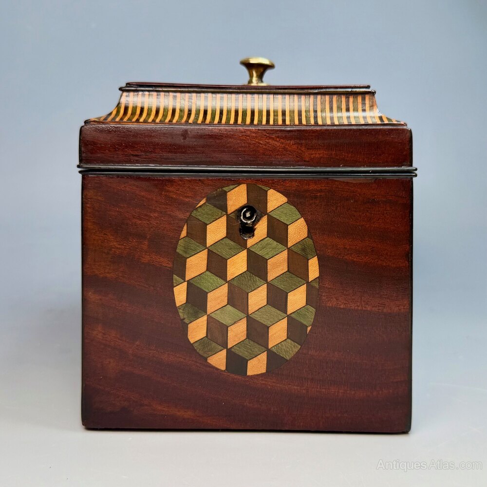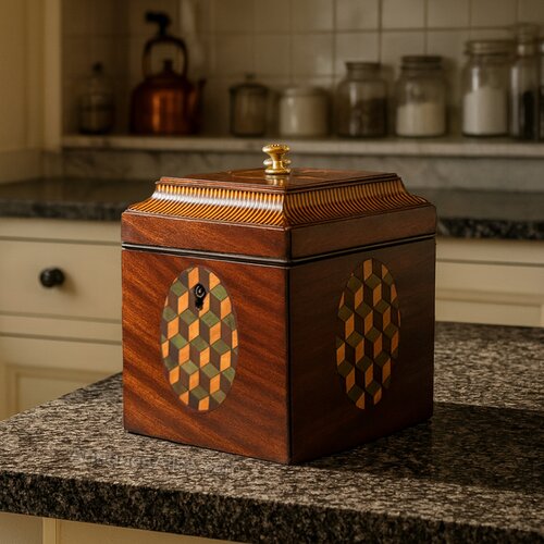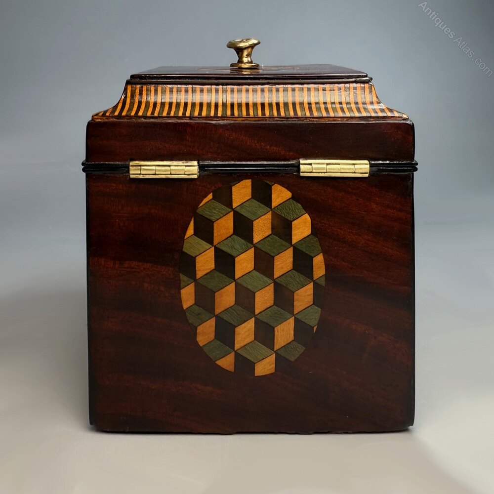 Georgian Tea Caddy with Inlaid Marquetry - c. 1800