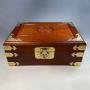 This vintage Chinese jewellery box is a lovely fusion of artistry, symbolism, and craftsmanship. Constructed from fine hardwood with hand-engraved brass mounts and an auspicious longevity medallion carved into the lid, it offers both decorative charm and practical elegance. Perfect as a luxury gift, a collector’s treasure, or a sustainable heirloom, this piece embodies timeless design and cultural heritage.Dimensions: