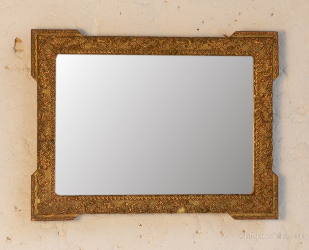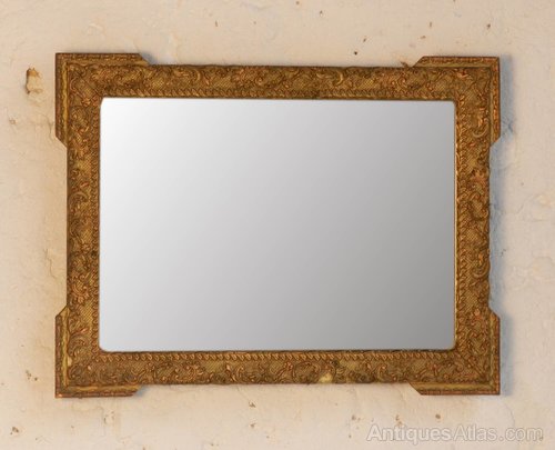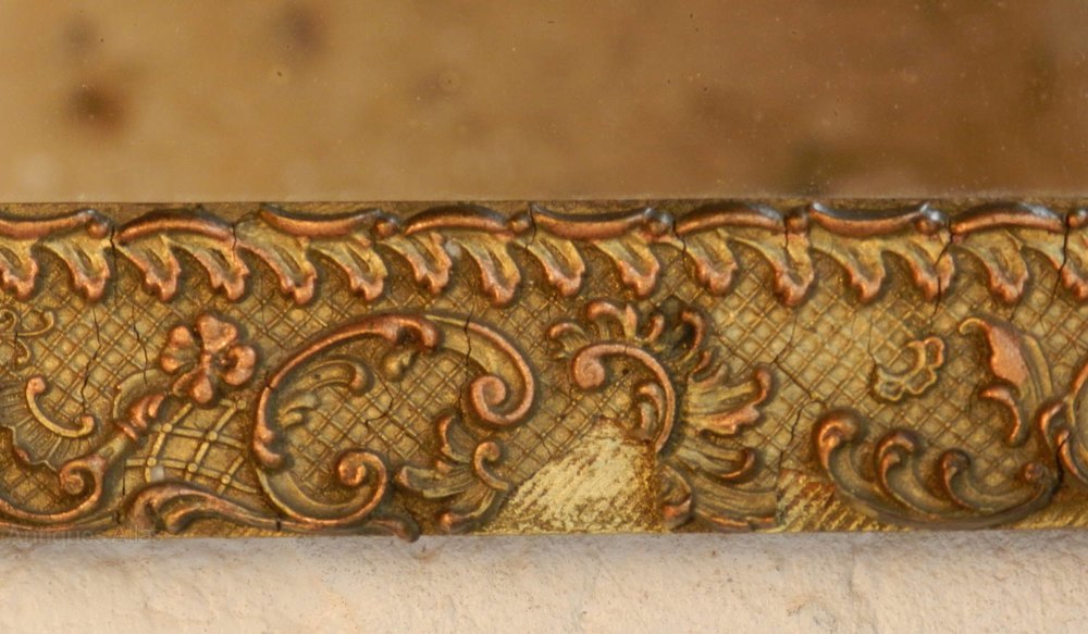 A very pretty giltwood mirror with finely moulded floral decoration all around the frame with outset corners.The gilding has bronzed/copper highlights throughout and it retains its original mirror plate and back boards.