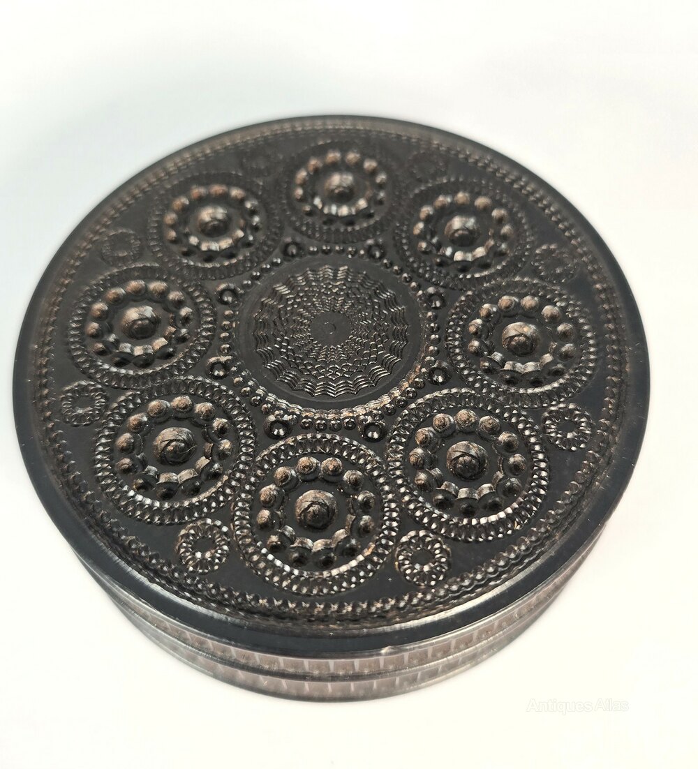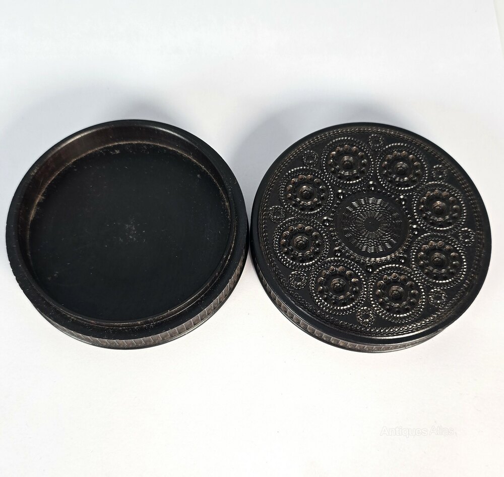 The lid lifts off a raised and snugly fitted rim to access what would have been the original spicy contents.
