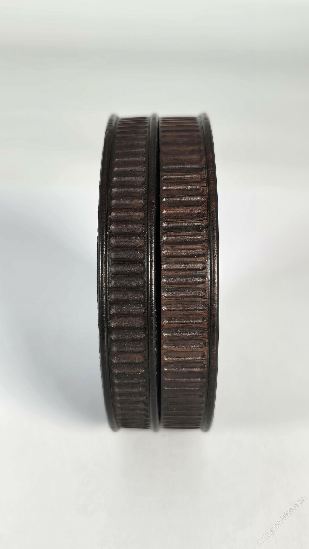 The sides of each half of the box have a matching fine upright fluted pattern, which has been accurately executed around the whole circumference of this small box.