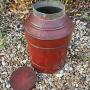 Vintage red tin Dutch tea canister. In good condition with removable lid.33 cms tall and 23 cms dia on base.DateMid 20th Century :