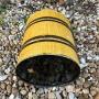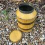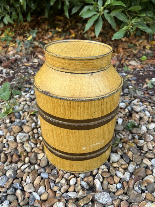 Vintage Round Brown Dutch tea canister. 23 cms tall and 16 cms dia on base.DateMid 20th Century :