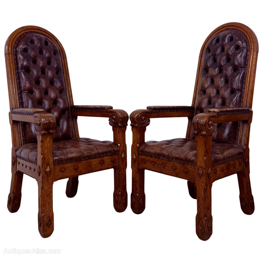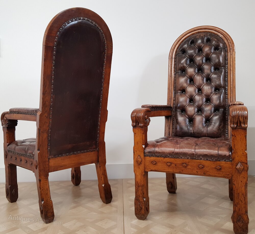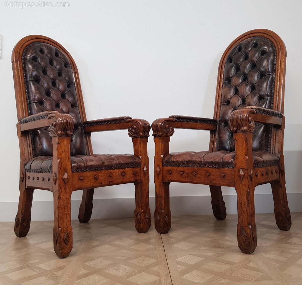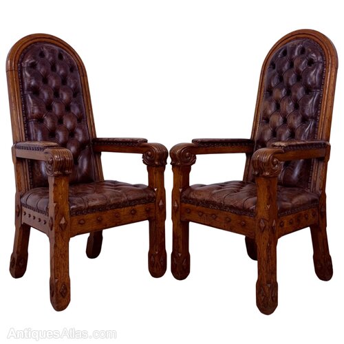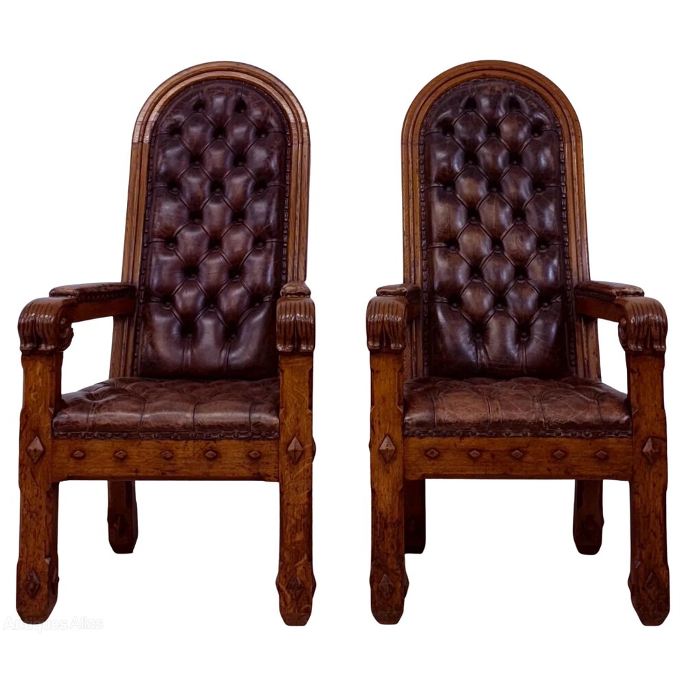 Pair of 19th Century Gothic Revival Oak Armchairs