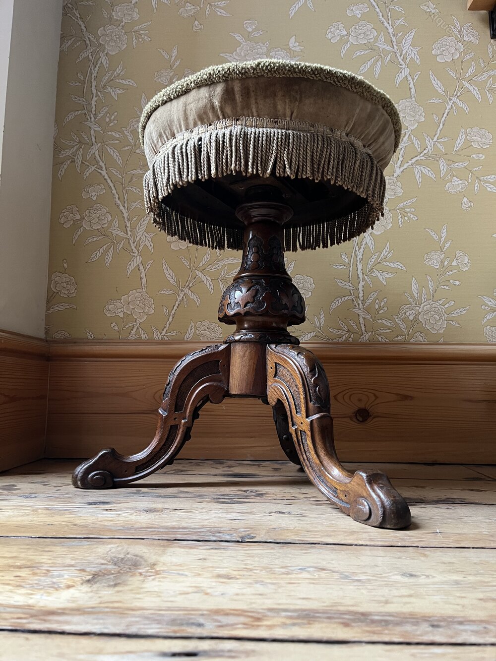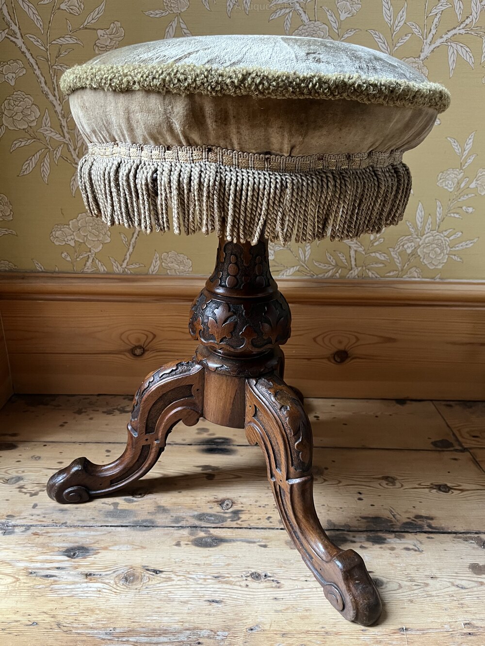 Quality Victorian Carved Walnut Piano Stool
