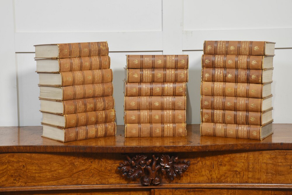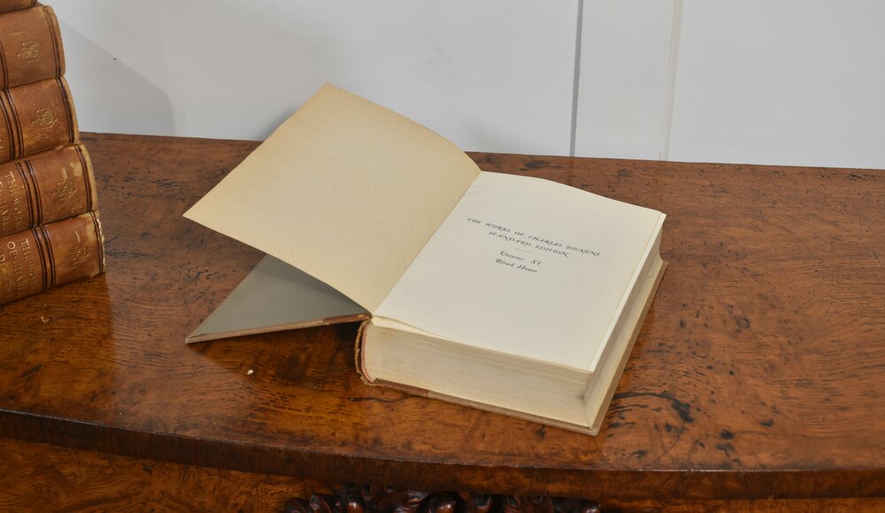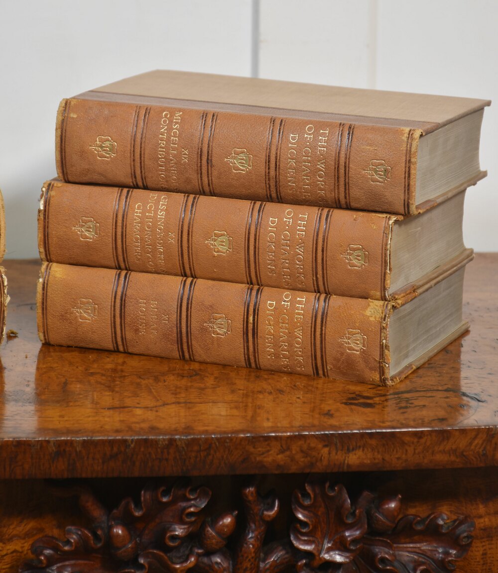 Set of twenty leather-bound books by Charles Dickens in good overall condition, some slight wear marks to edges.Dimensions