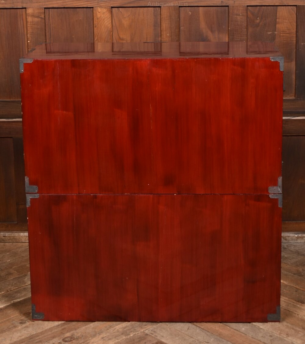 A superb Japanese Keyaki Tansu chest in wonderful antique condition. Constructed in two sections for ease of transport in and around the home. The top section features double doors with bold brass detailing that open to reveal a variety of sized drawers sitting on top of two long drawers each fitted with traditional handles. Its balanced proportions and fine joinery reflect the artistry of Japanese cabinetry, making it both a practical storage piece and a statement of timeless design.Internal Reference: SAI4028