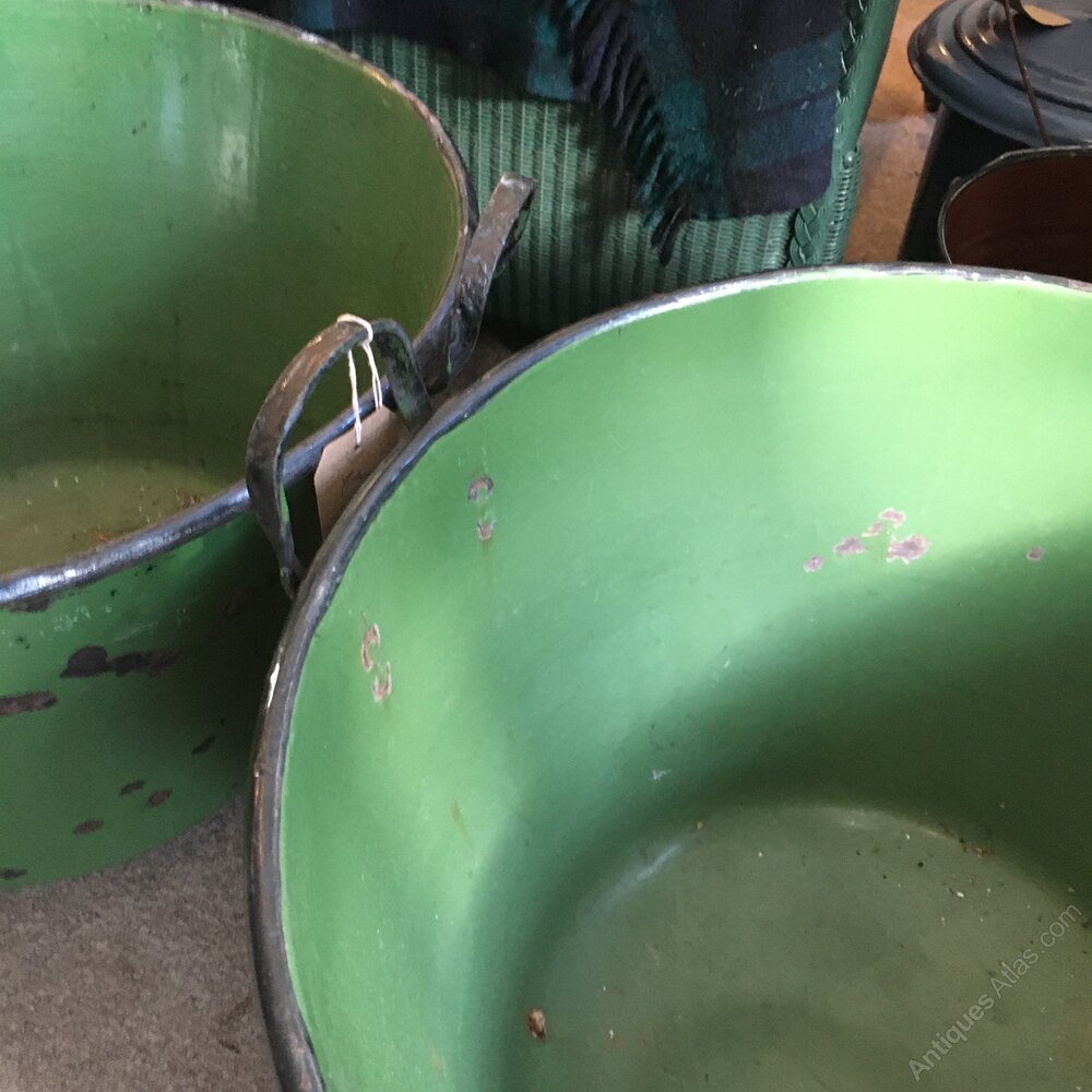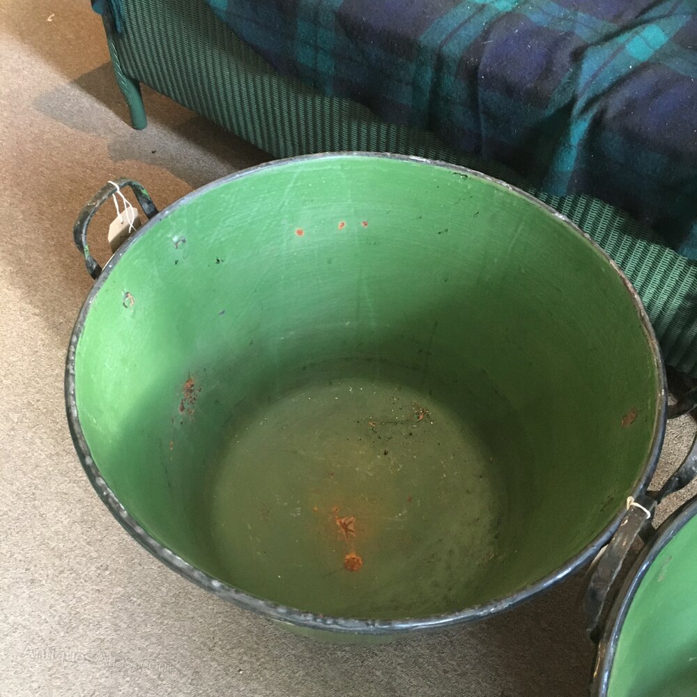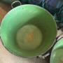 A pair of enamel Hungarian steel pots perfect for garden planters both in very good condition no holes or rust.Shipping information