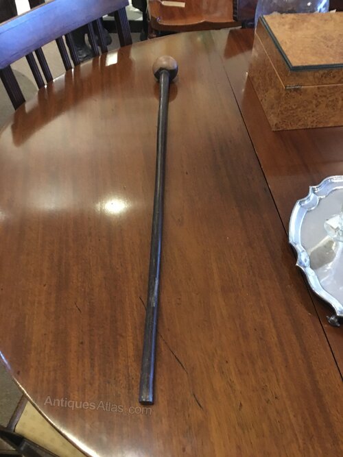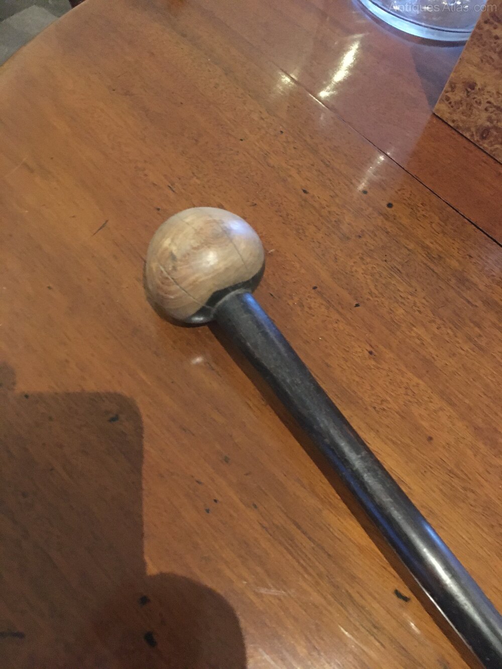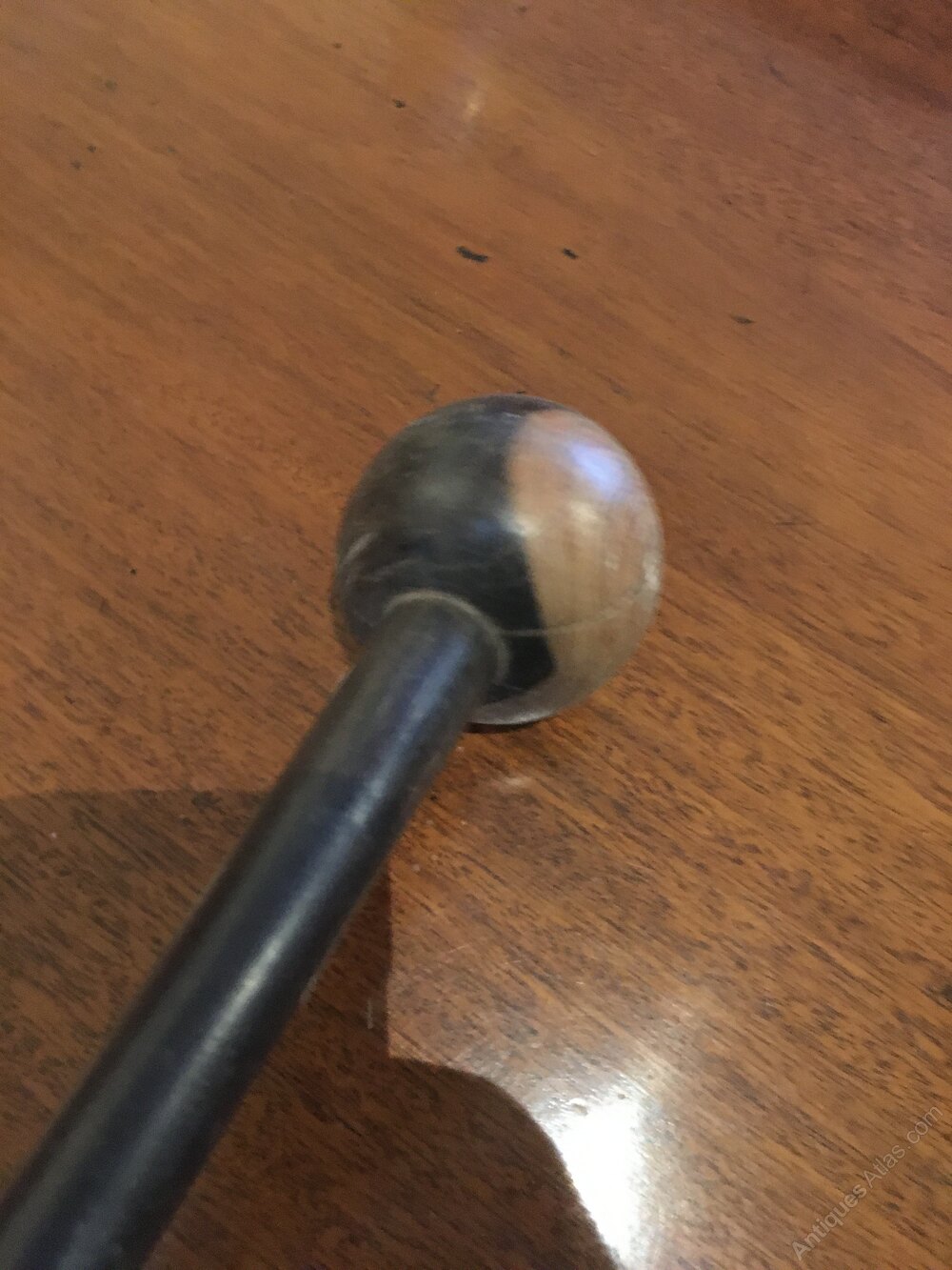 Antique Zulu knop Kerrie Victorian. This one has a white museum or collection number below the ball head . Dark African hardwood 78 cm overall the head 19 cm the shaft 72 cm a smaller head but still a formidable weapon.Shipping information