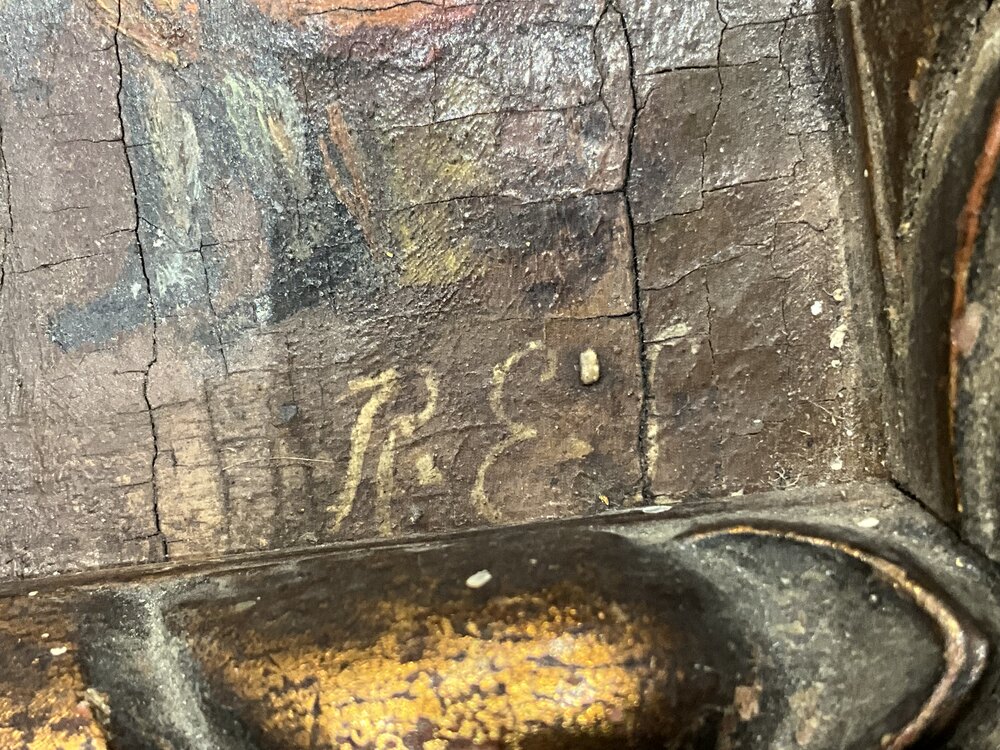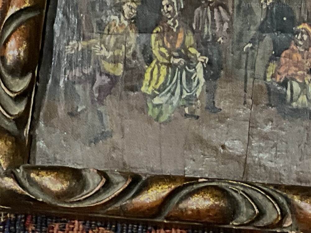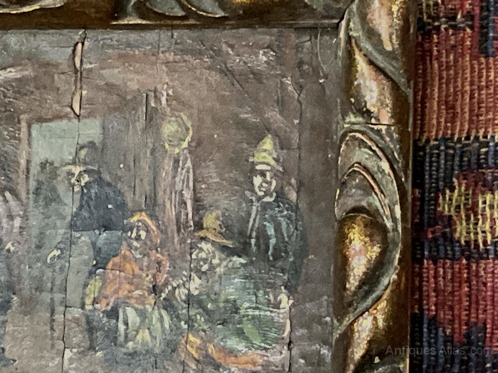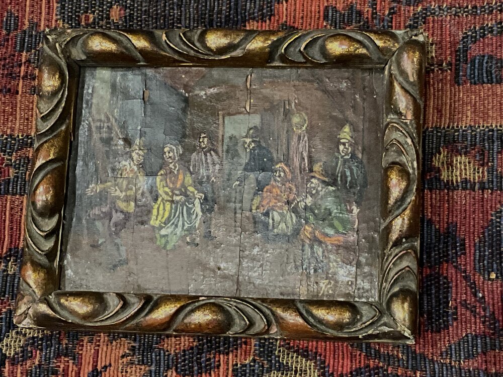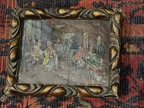 Small framed oil painting showing it’s age, has artists initials bottom right corner, painted on oak panel very old possibly early 18th century typical Dutch composition, nice traditional wooden frame dark gilded gold paint, sizes are length 17 cm height 14 cm de-th being 2 cm, offering free delivery Worldwide reference SB. Tel: +44 7505 165 843 We accept online payments for all our items listed: Bank transfer cash on collection or if wishing over the phone using your debit or credit cards, also doing layby payments plan, or email giving your address details & contact number and we shall send you your items invoice to make payment with your card. Send your request to - john.strong2@gmail.comWe now are only operating as an internet shop, We are passing on these savings to our customers making the prices more reasonable. Having turned to the internet and finding that all over heads are kept to a absolute minimum we related that this is the best way forward for any antique dealer or collector to display therein items on one to an enormous audience.