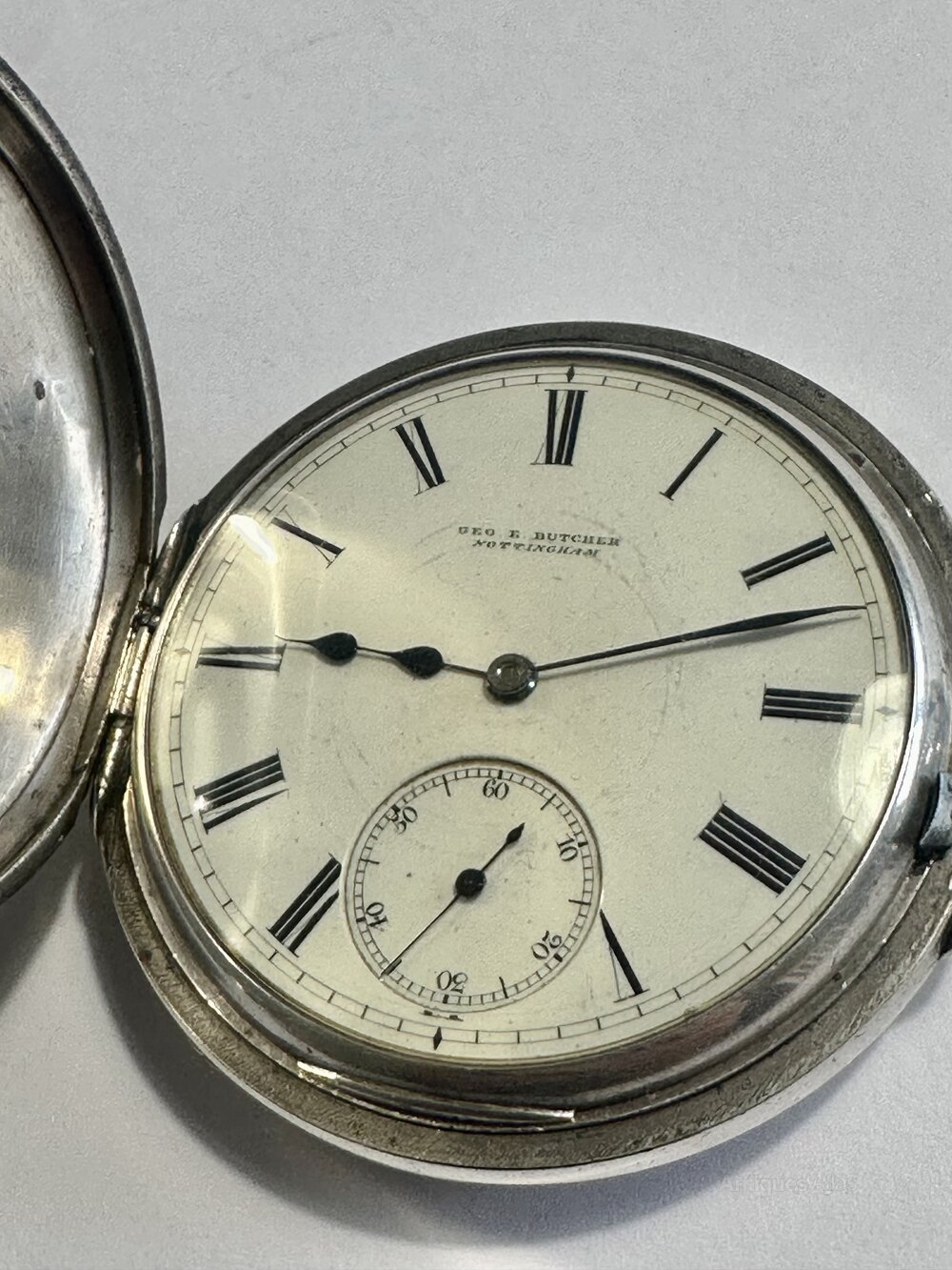 A fine quality Silver Half Hun tea Pocket Watch by George Butcher NottinghamDates to Chester 1896