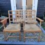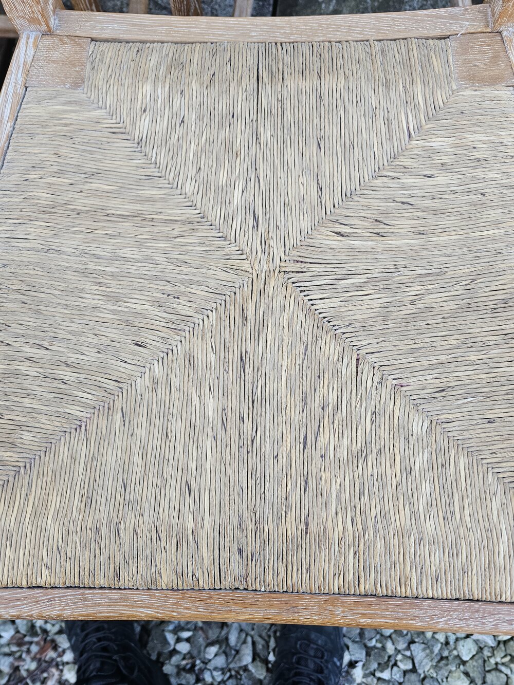 In weathered (limed) oak finish and in great condition with the original rush seating.