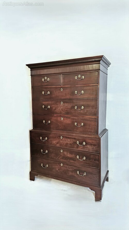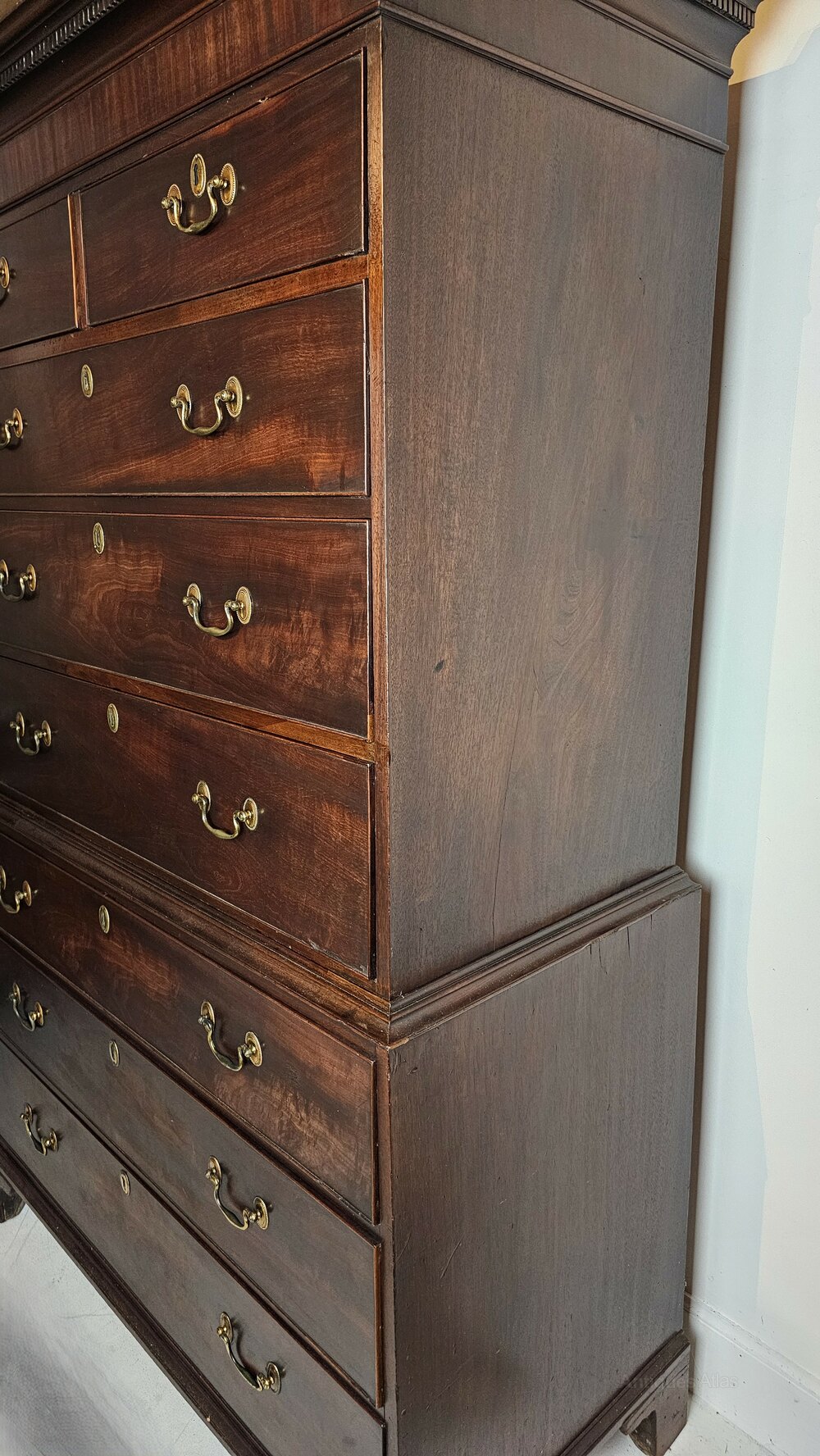 This is a fine 18th Century Georgian antique chest on chest/tallboy with original handles, bracket feet and of good colour.If you require more photographs & details please message us with your request.