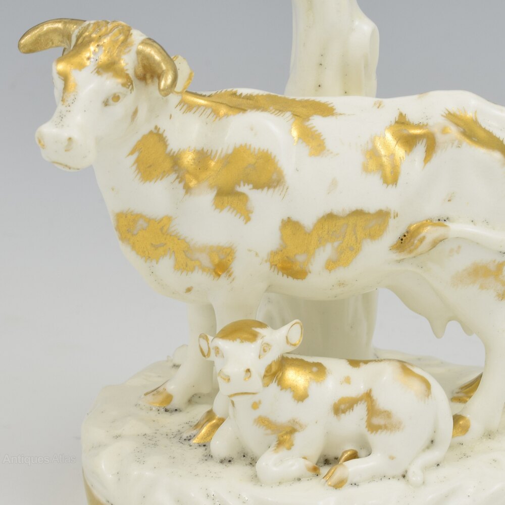 Gorgeous Derby Gilt Figure Group Cow & Calf