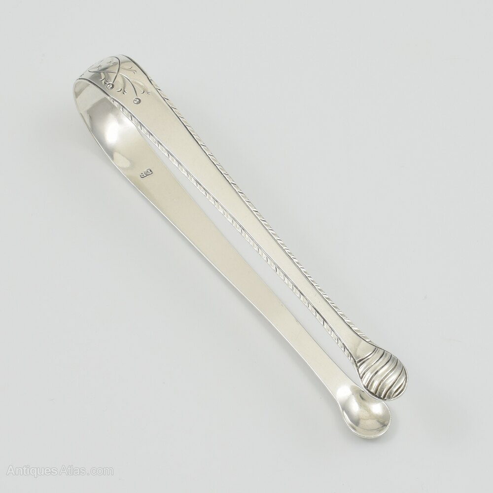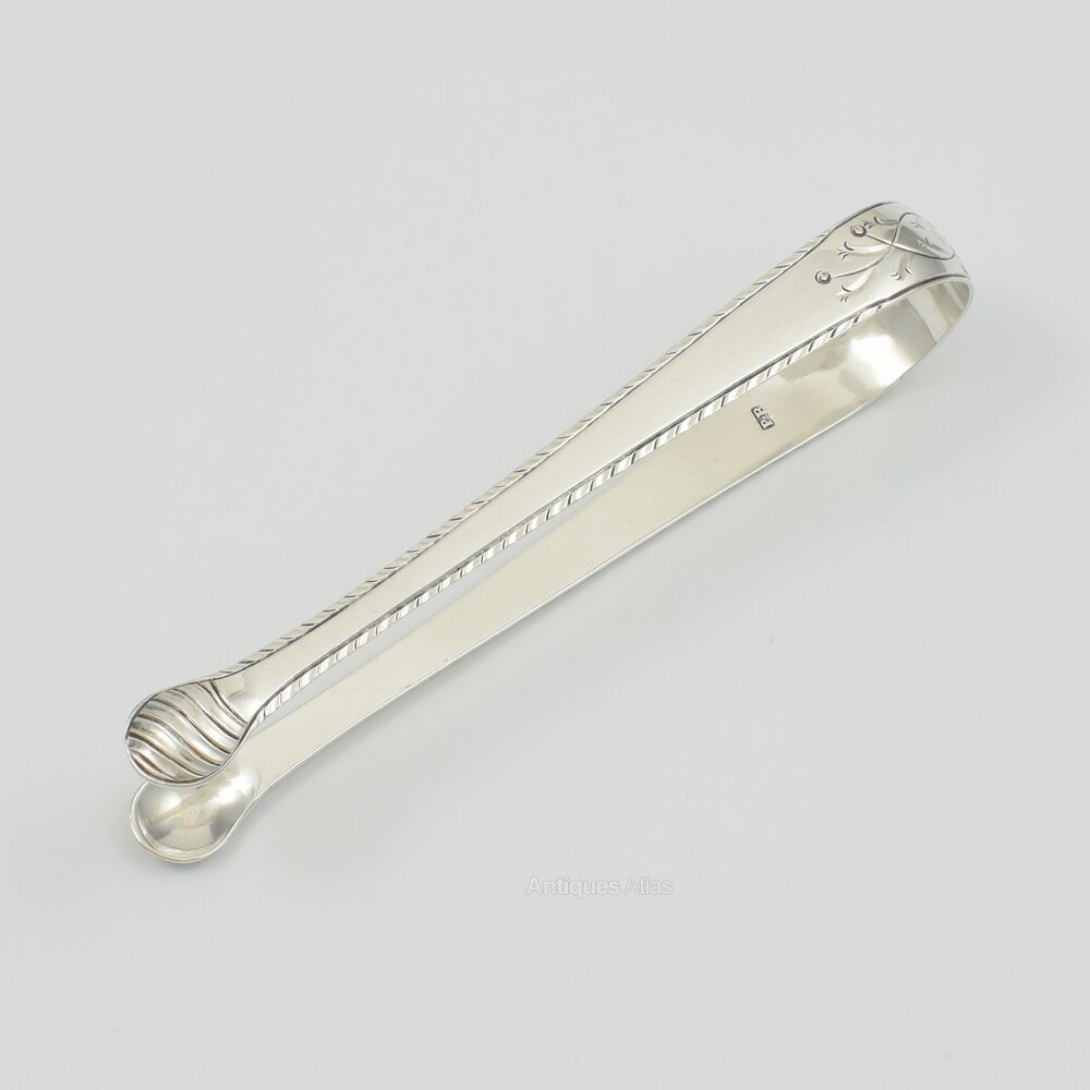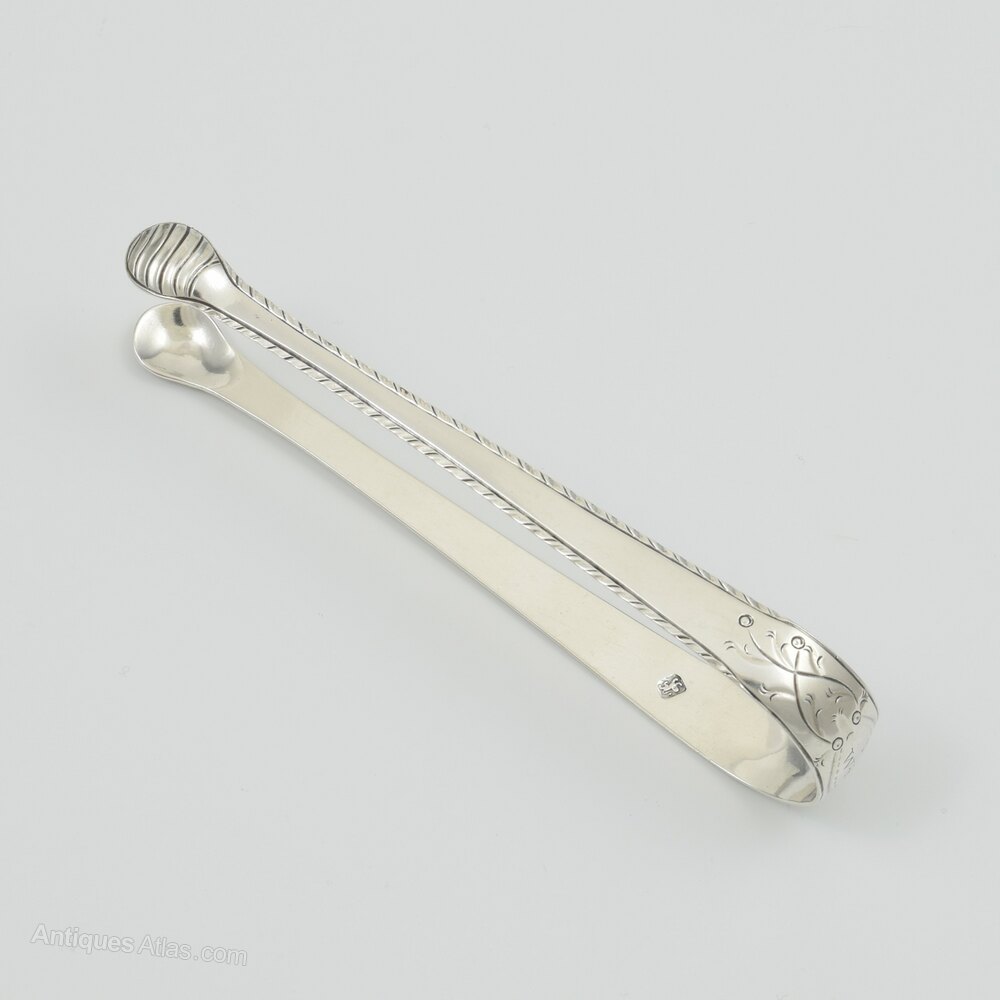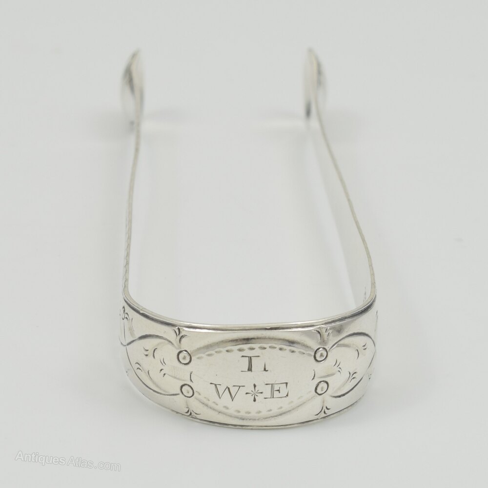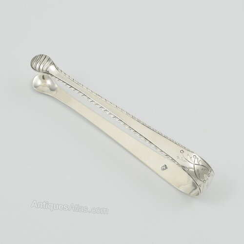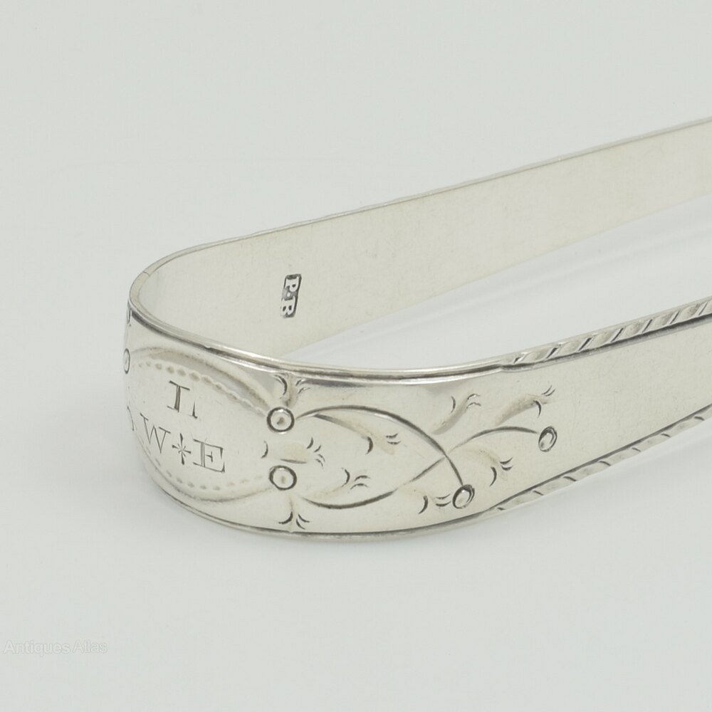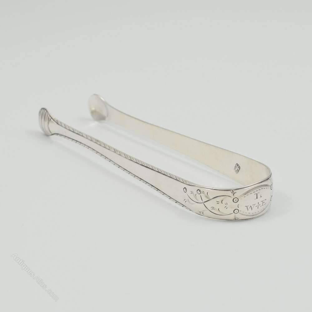 Georgian Bright Cut Engraved Silver Sugar Tongs