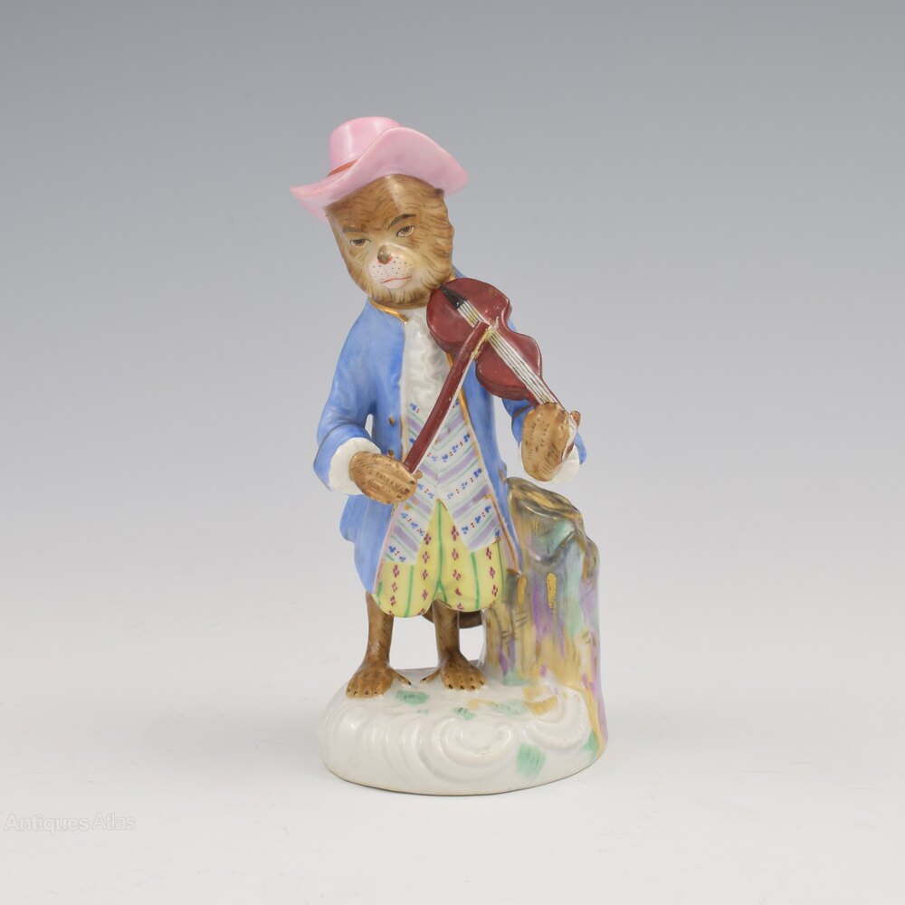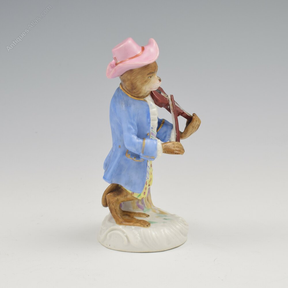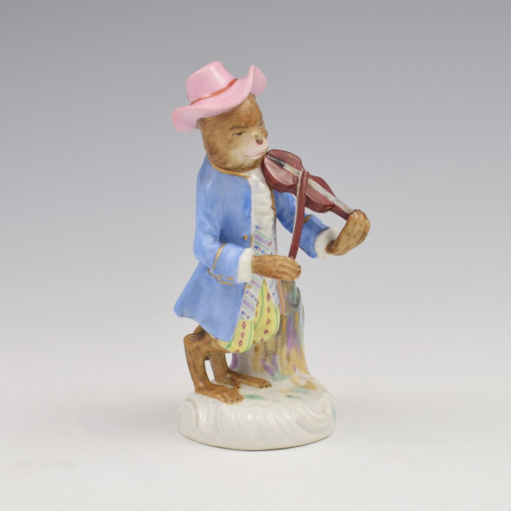 Condition: the bow is broken off where it meets the violin and the head of the violin is broken off below his left hand. A small chip to the rim at the back of his hat has been colour matched. No restoration and minor handling wear.