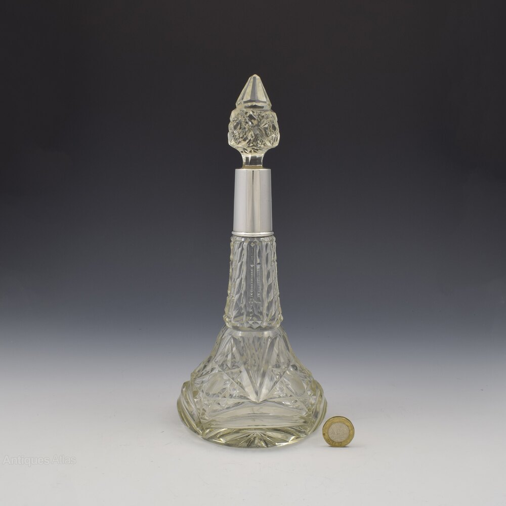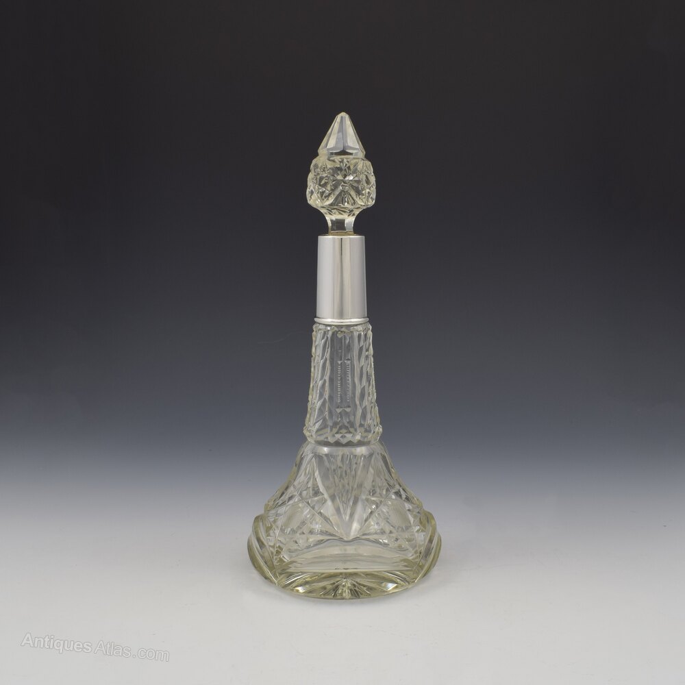 Large 11" Art Deco Silver & Cut Glass Scent Bottle