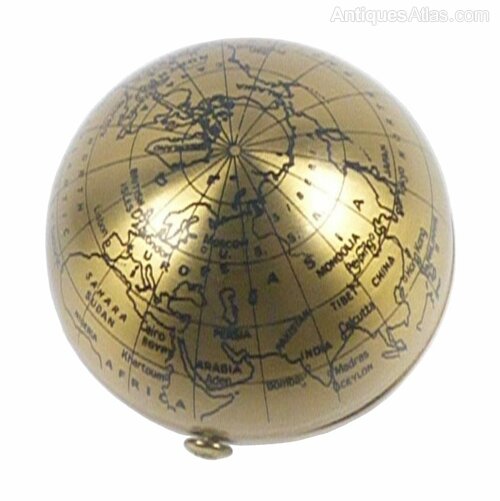 This highly collectible vintage Kigu novelty powder compact crafted to look like a world globe.The exterior surface of this beautiful and iconic vintage vanity has a gloriously glossy appearance.
