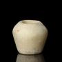 A carved miniature alabaster Egyptian kohl jar with a tapering flat base and curved shoulder.Middle Kingdom: Circa 2040-1782 BC.