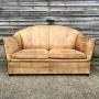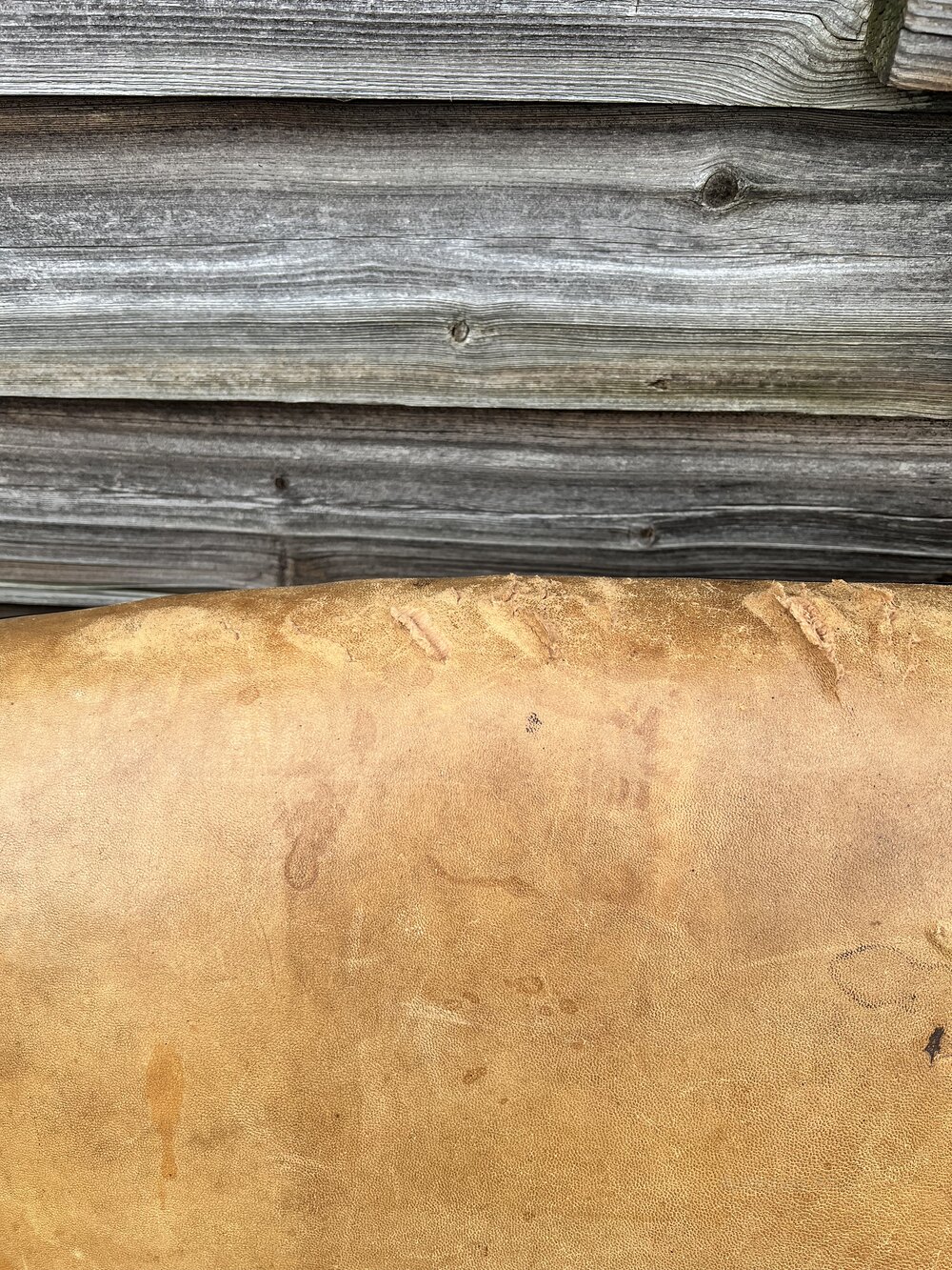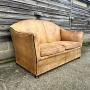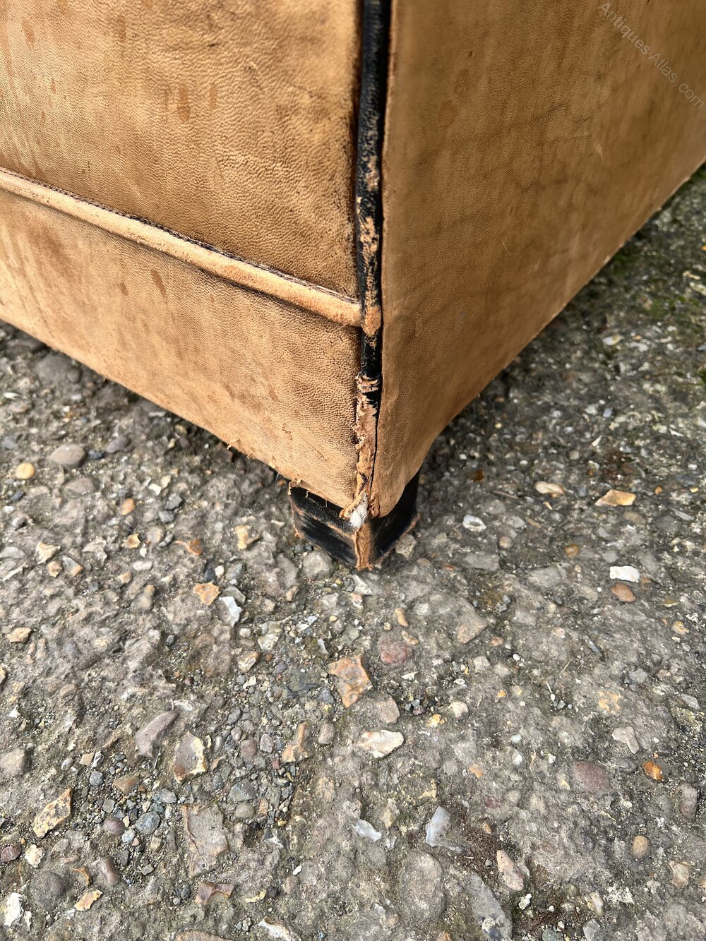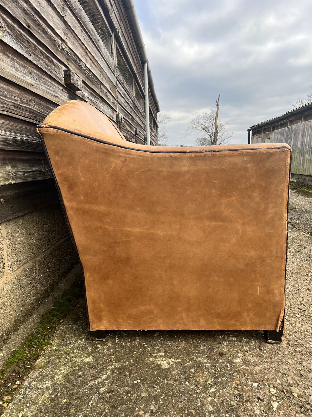1950’s French Leto seat leather sofa.In “worn in”condition with areas of scuffed and scarred leather.